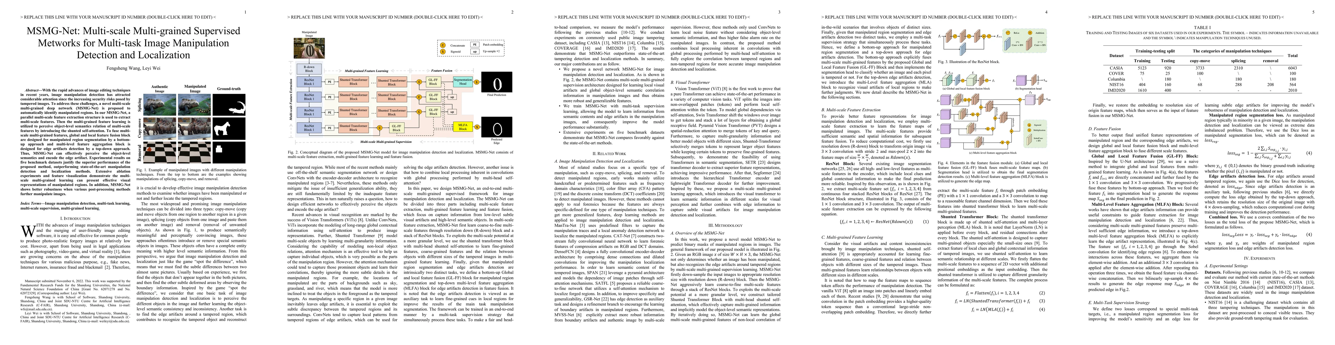 MSMG-Net is a novel deep network for detecting and localizing manipulated regions in images by leveraging multi-scale and multi-grained feature extraction. It outperforms existing methods on multiple datasets, demonstrating superior robustness and effective visual representation of manipulated regions.