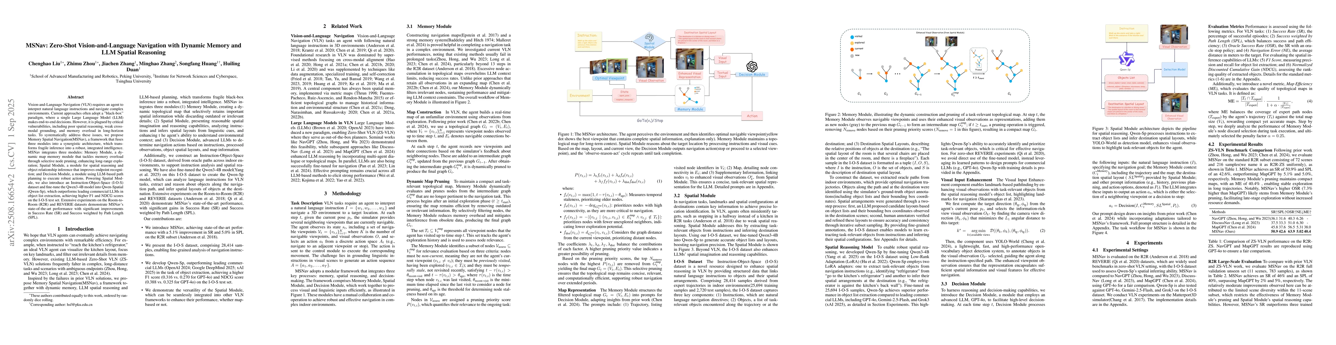 Vision-and-Language Navigation (VLN) requires an agent to interpret natural language instructions and navigate complex environments. Current approaches often adopt a "black-box" paradigm, where a single Large Language Model (LLM) makes end-to-end decisions. However, it is plagued by critical vulnerabilities, including poor spatial reasoning, weak cross-modal grounding, and memory overload in long-horizon tasks. To systematically address these issues, we propose Memory Spatial Navigation(MSNav), a framework that fuses three modules into a synergistic architecture, which transforms fragile inference into a robust, integrated intelligence. MSNav integrates three modules: Memory Module, a dynamic map memory module that tackles memory overload through selective node pruning, enhancing long-range exploration; Spatial Module, a module for spatial reasoning and object relationship inference that improves endpoint recognition; and Decision Module, a module using LLM-based path planning to execute robust actions. Powering Spatial Module, we also introduce an Instruction-Object-Space (I-O-S) dataset and fine-tune the Qwen3-4B model into Qwen-Spatial (Qwen-Sp), which outperforms leading commercial LLMs in object list extraction, achieving higher F1 and NDCG scores on the I-O-S test set. Extensive experiments on the Room-to-Room (R2R) and REVERIE datasets demonstrate MSNav's state-of-the-art performance with significant improvements in Success Rate (SR) and Success weighted by Path Length (SPL).