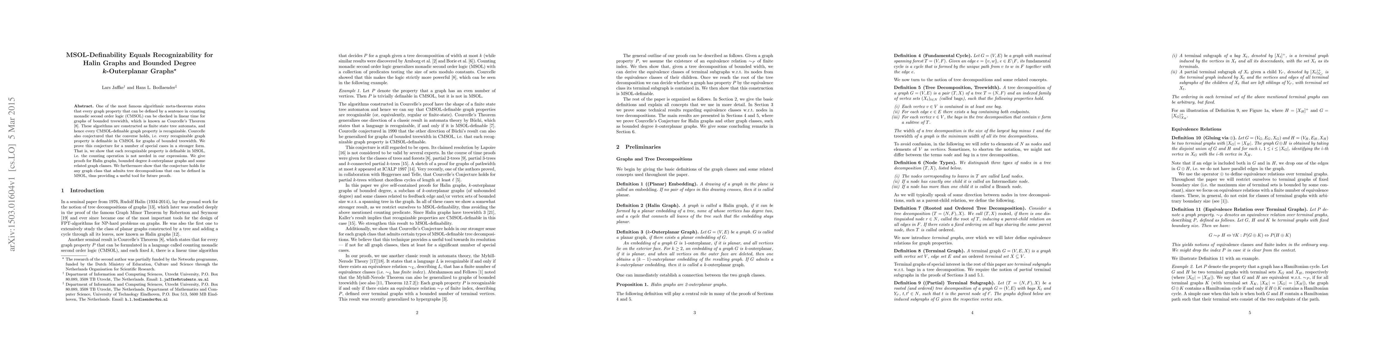 This paper proves that recognizability equals MSOL-definability for Halin graphs and bounded degree $k$-outerplanar graphs, resolving a conjecture by Courcelle. It extends this result to any graph class with MSOL-definable tree decompositions.