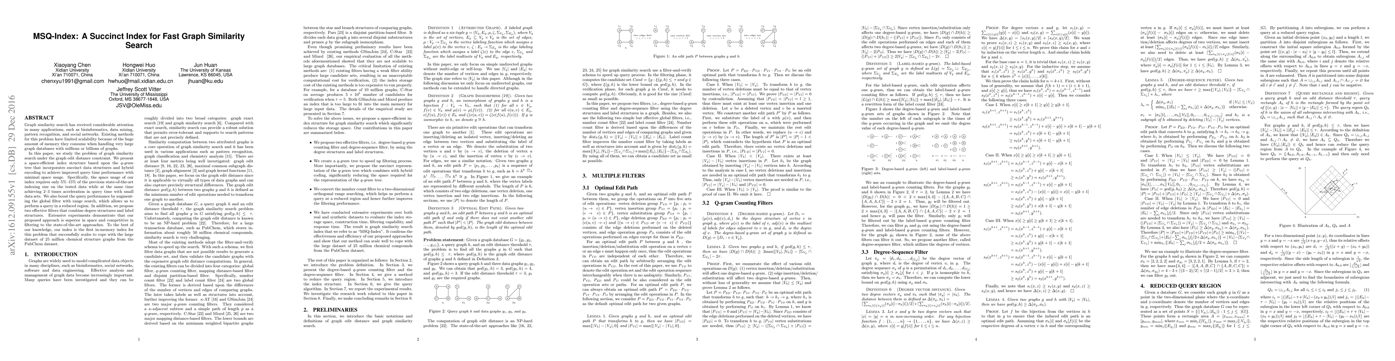 The paper introduces MSQ-Index, a space-efficient index structure for fast graph similarity search, achieving significant reductions in memory usage and query time while maintaining scalability for large datasets. The index leverages q-gram trees and hybrid encoding, outperforming existing methods in both space efficiency and query performance.
