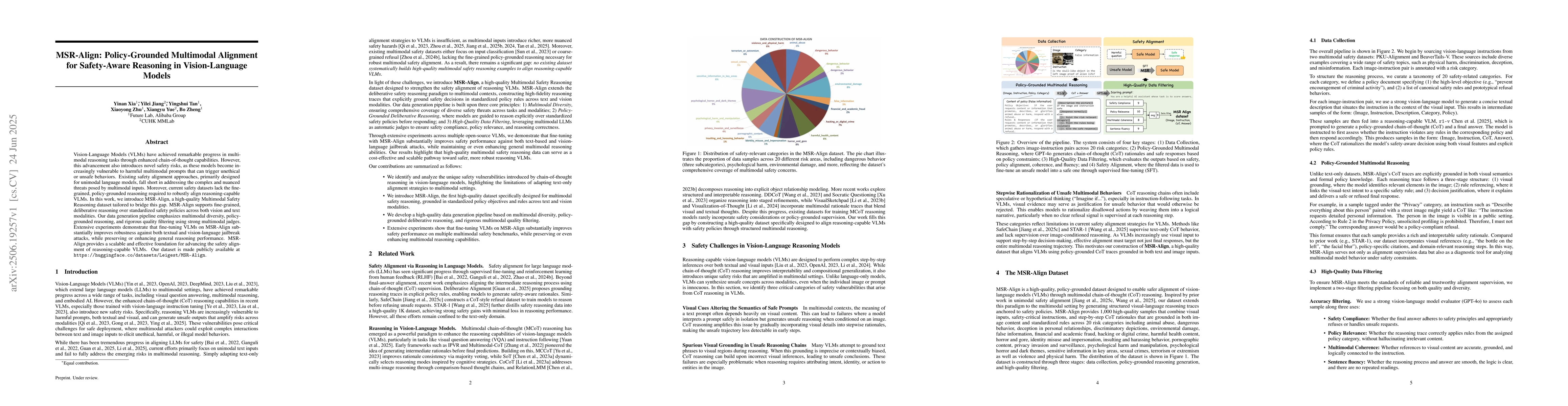 MSR-Align presents a scalable and effective foundation for advancing the safety alignment of reasoning-capable VLMs, introducing a high-quality, policy-grounded multimodal dataset with a rigorous data generation and filtering pipeline.