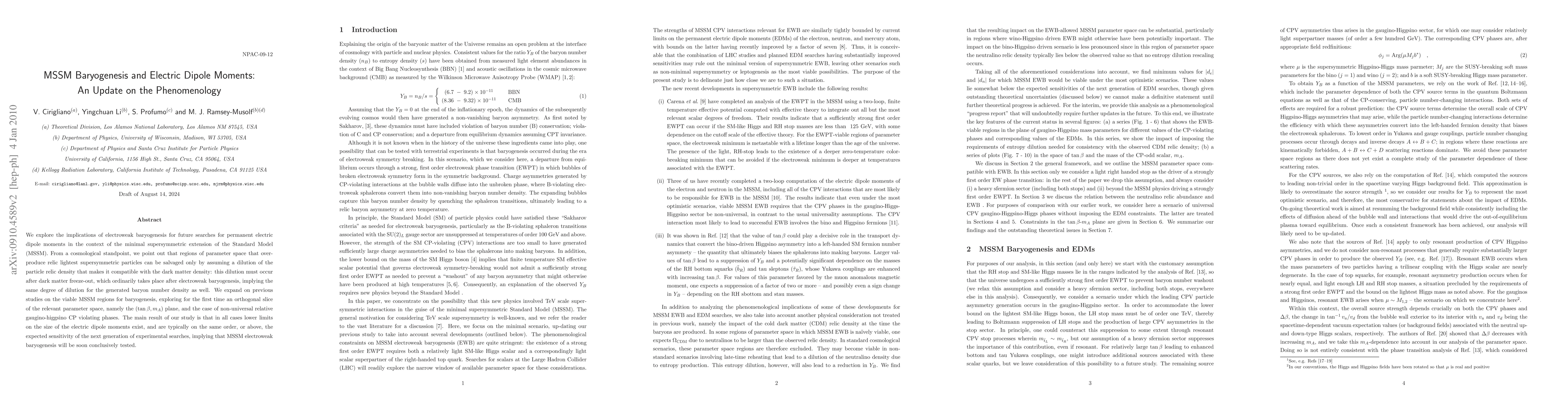 This paper examines the connection between electroweak baryogenesis and electric dipole moments in the MSSM, finding that viable regions for baryogenesis necessitate a dilution of relic densities post-freeze-out, which also affects baryon number. It concludes that future experiments may soon test MSSM electroweak baryogenesis, as lower limits on electric dipole moments are expected to be within reach of next-generation searches.