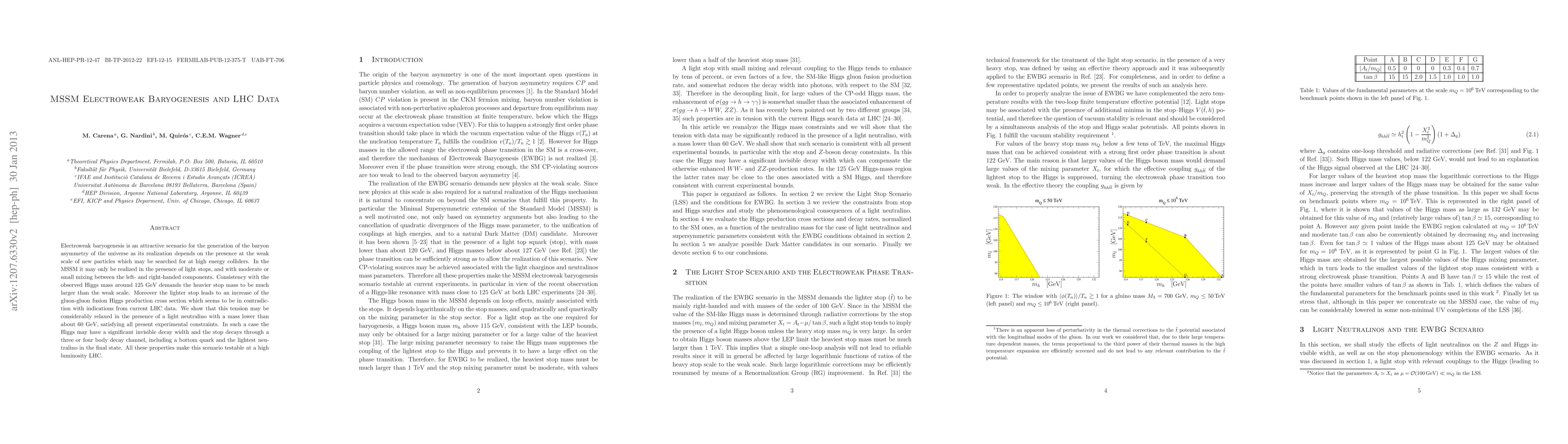 Electroweak baryogenesis is an attractive scenario for the generation of the baryon asymmetry of the universe as its realization depends on the presence at the weak scale of new particles which may be searched for at high energy colliders. In the MSSM it may only be realized in the presence of light stops, and with moderate or small mixing between the left- and right-handed components. Consistency with the observed Higgs mass around 125 GeV demands the heavier stop mass to be much larger than the weak scale. Moreover the lighter stop leads to an increase of the gluon-gluon fusion Higgs production cross section which seems to be in contradiction with indications from current LHC data. We show that this tension may be considerably relaxed in the presence of a light neutralino with a mass lower than about 60 GeV, satisfying all present experimental constraints. In such a case the Higgs may have a significant invisible decay width and the stop decays through a three or four body decay channel, including a bottom quark and the lightest neutralino in the final state. All these properties make this scenario testable at a high luminosity LHC.