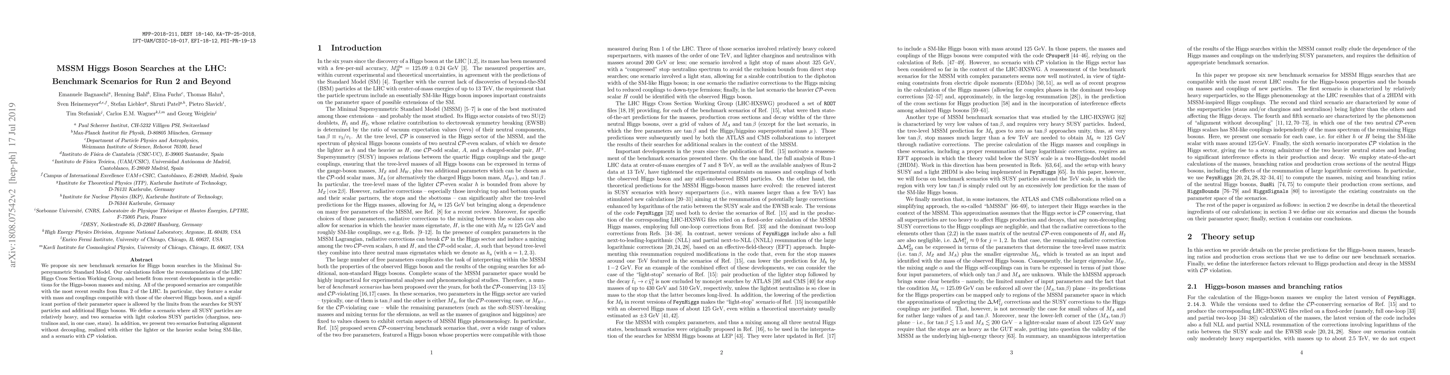 This paper proposes six benchmark scenarios for Minimal Supersymmetric Standard Model (MSSM) Higgs boson searches at the LHC, compatible with recent LHC Run 2 results and featuring various SUSY particles' masses and couplings, including alignment without decoupling and CP violation.