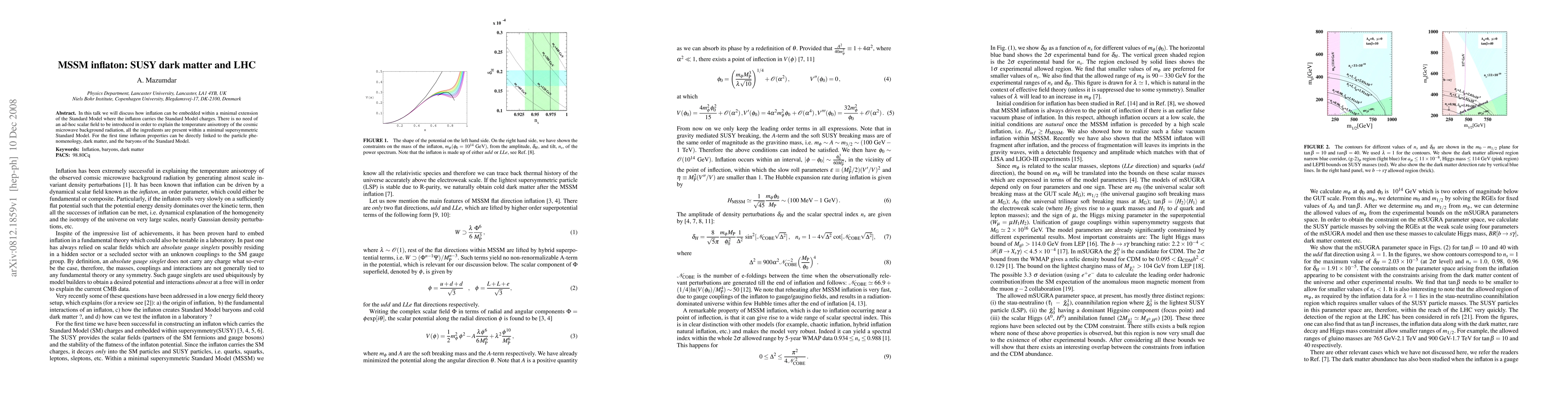 This paper explores embedding inflation within a minimal supersymmetric Standard Model (MSSM) where the inflaton carries Standard Model charges, linking inflaton properties to dark matter and Standard Model particles, without requiring an additional scalar field. It connects inflationary dynamics to MSSM phenomenology and implications for the Large Hadron Collider (LHC).