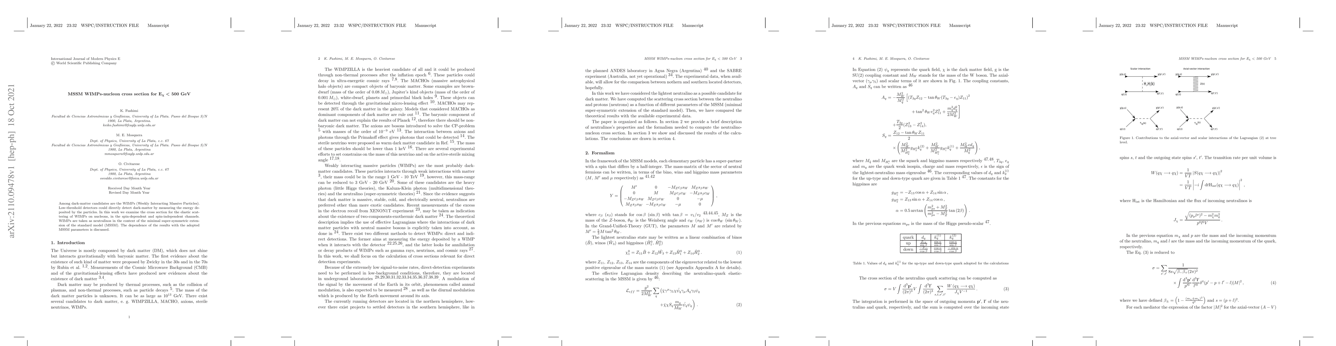 The paper derives and presents detailed expressions for the squared matrix elements of both axial-vector and scalar interactions between neutralinos and nucleons, providing a comprehensive framework for calculating WIMP-nucleon cross-sections in the MSSM.