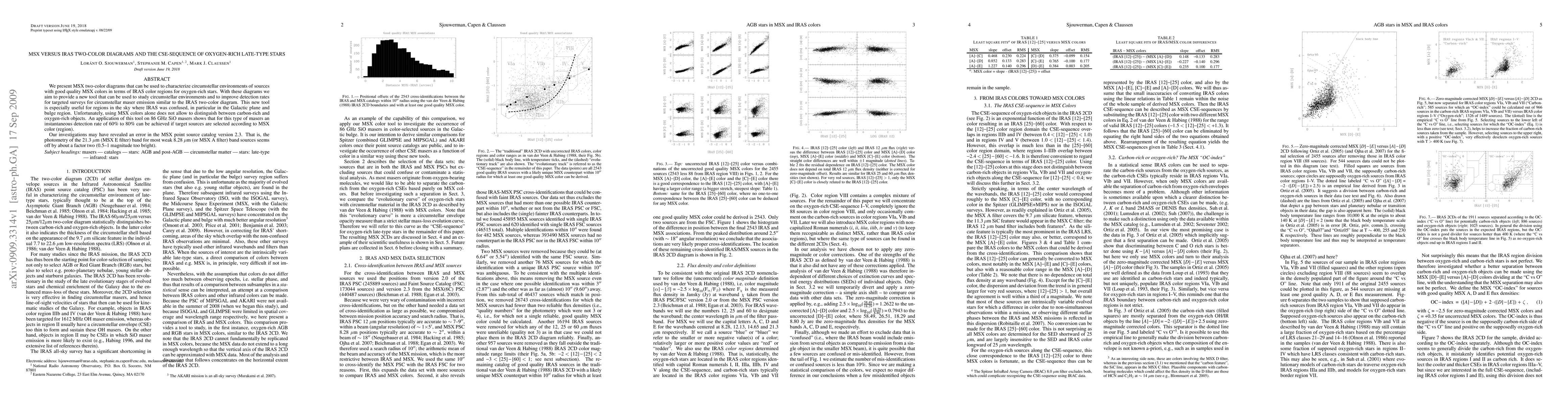 We present MSX two-color diagrams that can be used to characterize circumstellar environments of sources with good quality MSX colors in terms of IRAS color regions for oxygen-rich stars. With these diagrams we aim to provide a new tool that can be used to study circumstellar environments and to improve detection rates for targeted surveys for circumstellar maser emission similar to the IRAS two-color diagram. This new tool is especially useful for regions in the sky where IRAS was confused, in particular in the Galactic plane and bulge region. Unfortunately, using MSX colors alone does not allow to distinguish between carbon-rich and oxygen-rich objects. An application of this tool on 86 GHz SiO masers shows that for this type of masers an instantaneous detection rate of 60% to 80% can be achieved if target sources are selected according to MSX color (region). Our investigations may have revealed an error in the MSX point source catalog version 2.3. That is, the photometry of the 21.3 $\mu$m (MSX E filter) band for most weak 8.28 $\mu$m (or MSX A filter) band sources seems off by about a factor two (0.5--1 magnitude too bright).