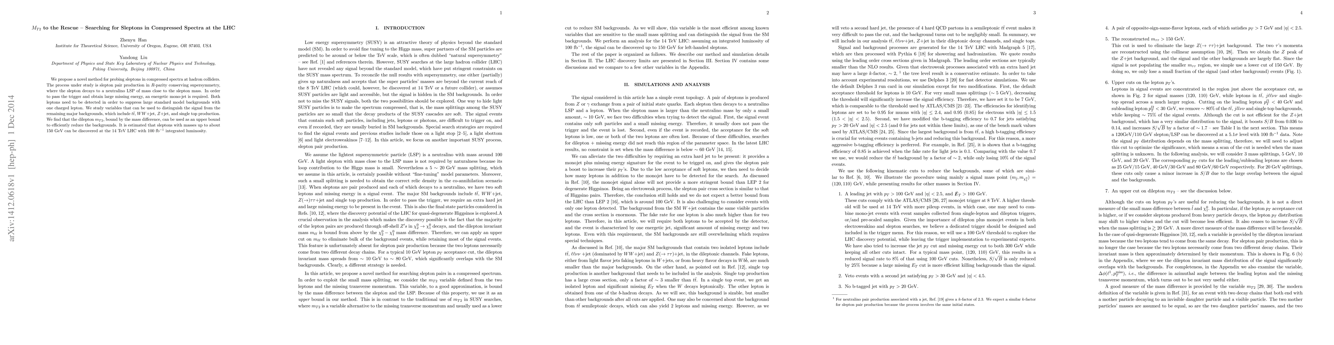 We propose a novel method for probing sleptons in compressed spectra at hadron colliders. The process under study is slepton pair production in R-parity conserving supersymmetry, where the slepton decays to a neutralino LSP of mass close to the slepton mass. In order to pass the trigger and obtain large missing energy, an energetic mono-jet is required. Both leptons need to be detected in order to suppress large standard model backgrounds with one charged lepton. We study variables that can be used to distinguish the signal from the remaining major backgrounds, which include tt, WW+jet, Z+jet, and single top production. We find that the dilepton MT2, bound by the mass difference, can be used as an upper bound to efficiently reduce the backgrounds. It is estimated that sleptons with masses up to about 150 GeV can be discovered at the 14 TeV LHC with 100/fb integrated luminosity.