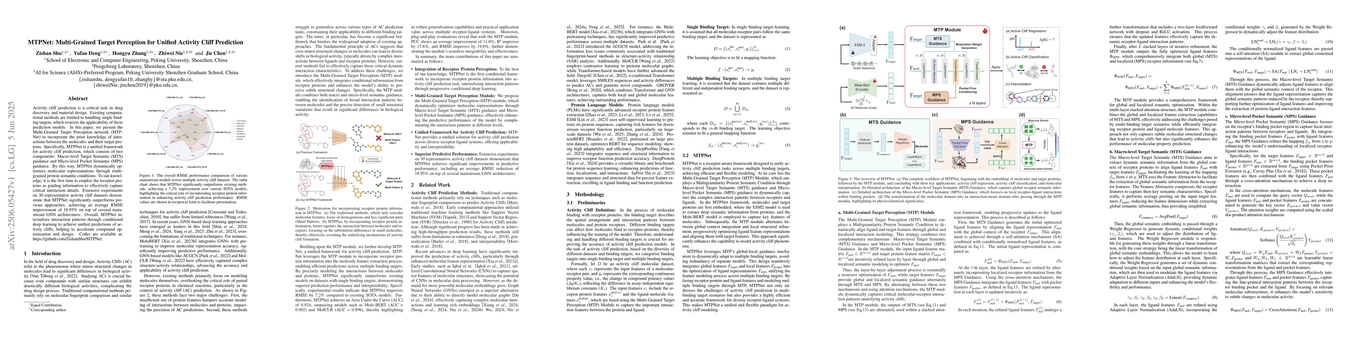 MTPNet introduces a novel multi-grained target perception approach for activity cliff prediction, utilizing MTS and MPS guidance components to dynamically optimize molecular representations.