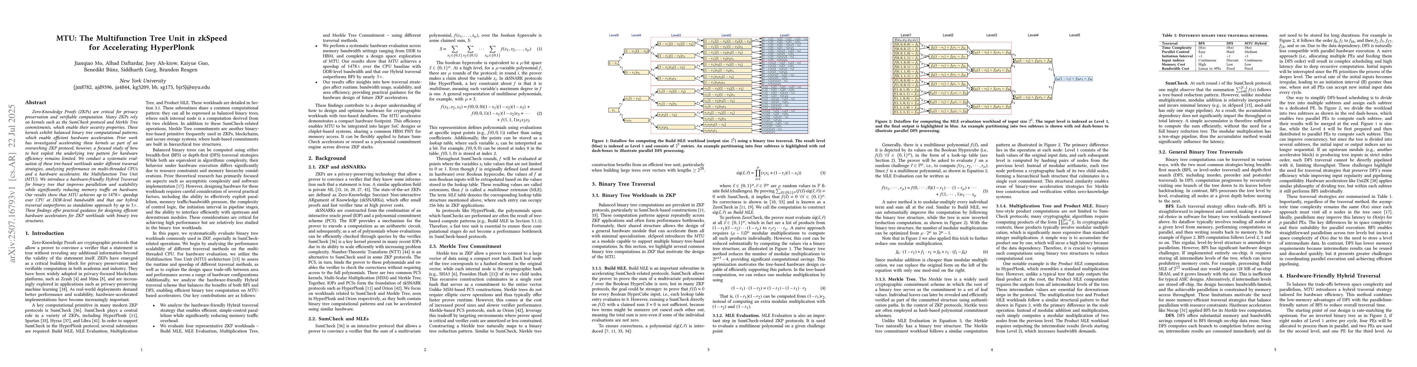 Zero-Knowledge Proofs (ZKPs) are critical for privacy preservation and verifiable computation. Many ZKPs rely on kernels such as the SumCheck protocol and Merkle Tree commitments, which enable their security properties. These kernels exhibit balanced binary tree computational patterns, which enable efficient hardware acceleration. Prior work has investigated accelerating these kernels as part of an overarching ZKP protocol; however, a focused study of how to best exploit the underlying tree pattern for hardware efficiency remains limited. We conduct a systematic evaluation of these tree-based workloads under different traversal strategies, analyzing performance on multi-threaded CPUs and a hardware accelerator, the Multifunction Tree Unit (MTU). We introduce a hardware-friendly Hybrid Traversal for binary tree that improves parallelism and scalability while significantly reducing memory traffic on hardware. Our results show that MTU achieves up to 1478$\times$ speedup over CPU at DDR-level bandwidth and that our hybrid traversal outperforms as standalone approach by up to 3$\times$. These findings offer practical guidance for designing efficient hardware accelerators for ZKP workloads with binary tree structures.