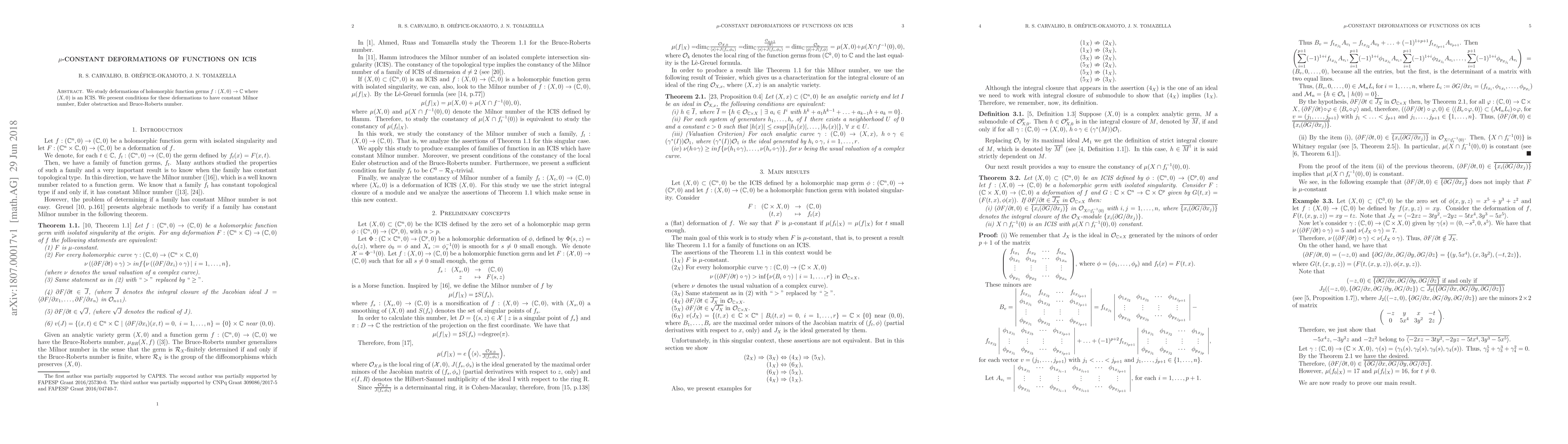 This paper investigates deformations of holomorphic function germs in an ICIS, focusing on conditions that ensure the Milnor number, Euler obstruction, and Bruce-Roberts number remain constant during these deformations.