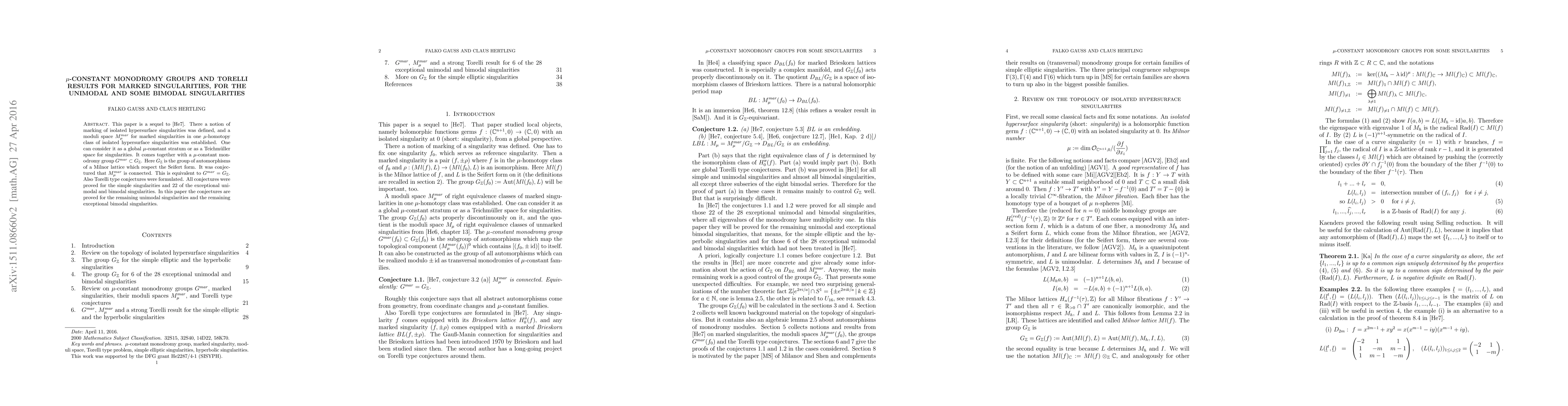 This paper is a sequel to [He7]. There a notion of marking of isolated hypersurface singularities was defined, and a moduli space $M_\mu^{mar}$ for marked singularities in one $\mu$-homotopy class of isolated hypersurface singularities was established. One can consider it as a global $\mu$-constant stratum or as a Teichm\"uller space for singularities. It comes together with a $\mu$-constant monodromy group $G^{mar}\subset G_Z$. Here $G_Z$ is the group of automorphisms of a Milnor lattice which respect the Seifert form. It was conjectured that $M_\mu^{mar}$ is connected. This is equivalent to $G^{mar}= G_Z$. Also Torelli type conjectures were formulated. All conjectures were proved for the simple singularities and 22 of the exceptional unimodal and bimodal singularities. In this paper the conjectures are proved for the remaining unimodal singularities and the remaining exceptional bimodal singularities.