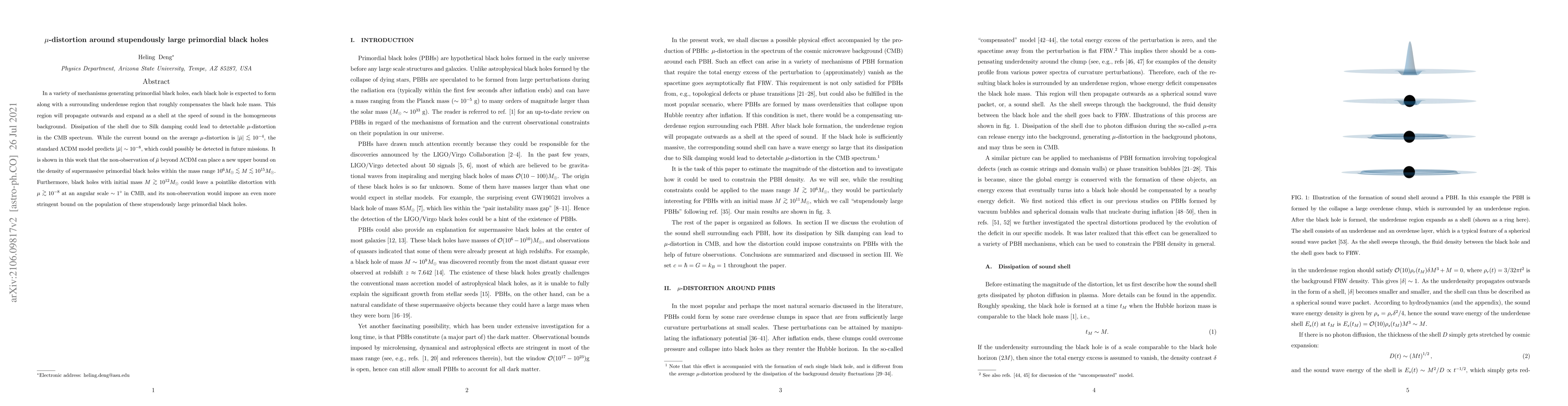 In a variety of mechanisms generating primordial black holes, each black hole is expected to form along with a surrounding underdense region that roughly compensates the black hole mass. This region will propagate outwards and expand as a shell at the speed of sound in the homogeneous background. Dissipation of the shell due to Silk damping could lead to detectable $\mu$-distortion in the CMB spectrum. While the current bound on the average $\mu$-distortion is $\left| \bar{\mu}\right|\lesssim10^{-4}$, the standard $\Lambda$CDM model predicts $\left| \bar{\mu}\right|\sim10^{-8}$, which could possibly be detected in future missions. It is shown in this work that the non-observation of $\bar{\mu}$ beyond $\Lambda$CDM can place a new upper bound on the density of supermassive primordial black holes within the mass range $10^{6}M_{\odot}\lesssim M\lesssim10^{15}M_{\odot}$. Furthermore, black holes with initial mass $M\gtrsim10^{12}M_{\odot}$ could leave a pointlike distortion with $\mu\gtrsim10^{-8}$ at an angular scale $\sim 1^{\circ}$ in CMB, and its non-observation would impose an even more stringent bound on the population of these stupendously large primordial black holes.