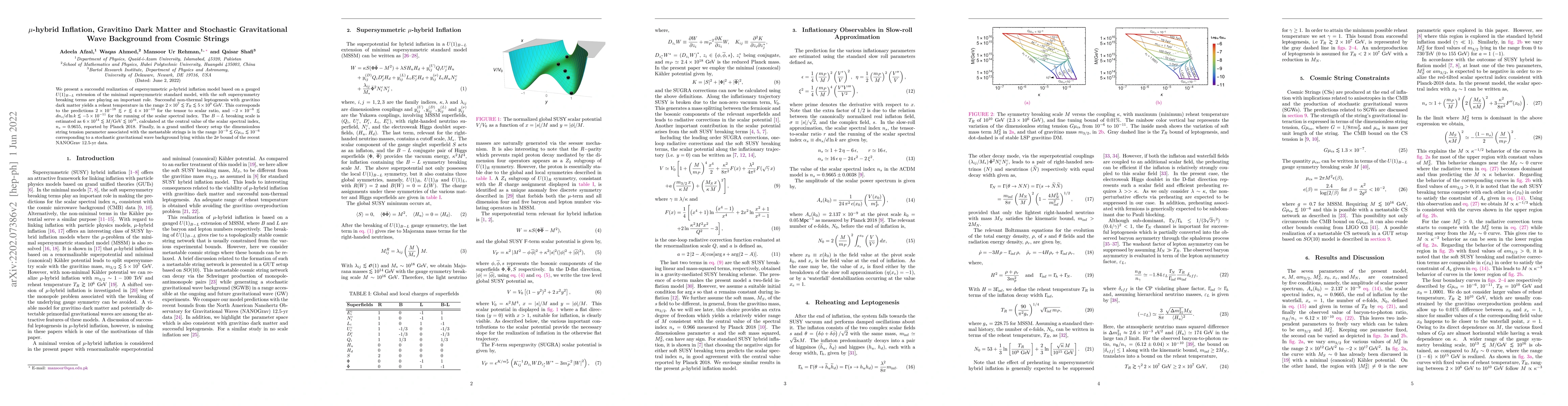 This paper explores a supersymmetric $\mu$-hybrid inflation model based on a $U(1)_{B-L}$ extended MSSM, predicting a gravitino dark matter scenario and a stochastic gravitational wave background from cosmic strings. The model yields a reheat temperature range conducive to non-thermal leptogenesis and aligns with observational constraints on the tensor-to-scalar ratio and scalar spectral index.