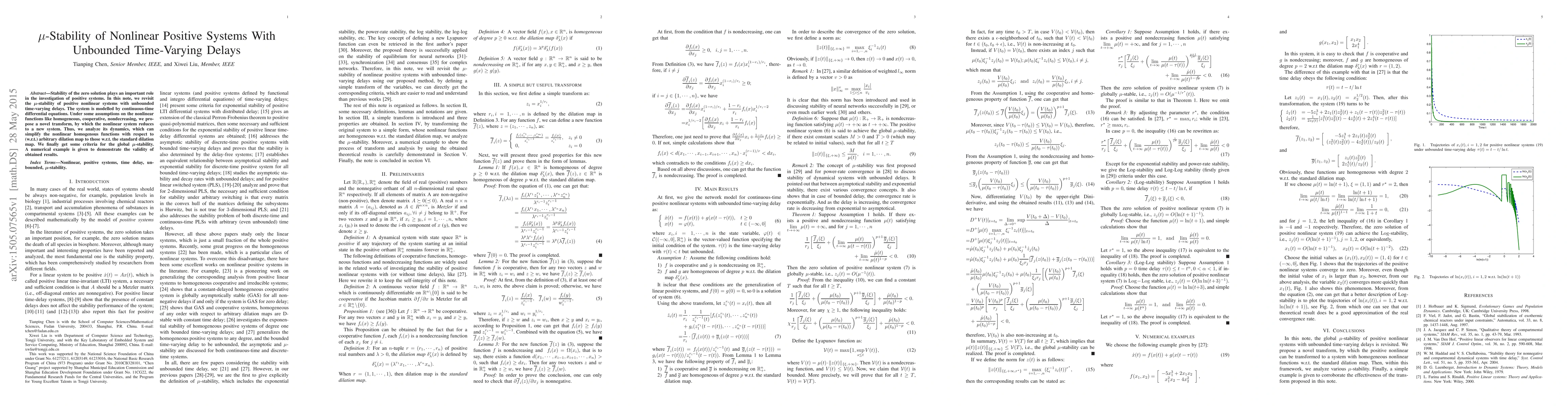 The paper introduces a transform that simplifies the analysis of μ-stability for nonlinear positive systems with unbounded time-varying delays, providing easier-to-read criteria compared to previous works.