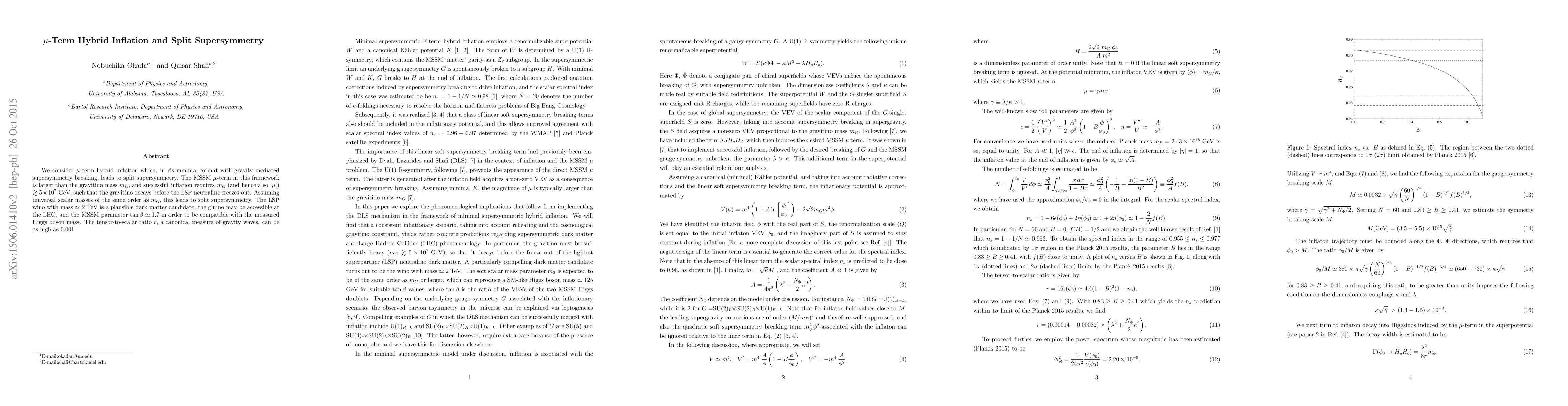 This paper explores $\mu$-term hybrid inflation within split supersymmetry, requiring a gravitino mass of at least $5 \times 10^7$ GeV for successful inflation. The framework suggests a dark matter candidate in the form of a 2 TeV LSP wino and potential LHC accessibility for the gluino.