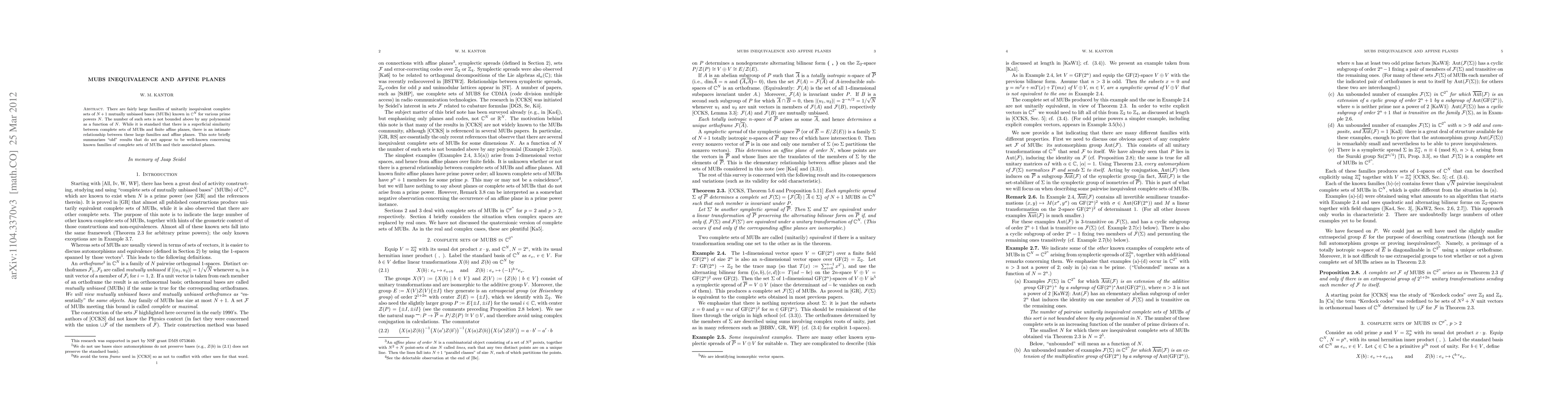 This paper explores the large families of unitarily inequivalent complete sets of mutually unbiased bases (MUBs) in complex vector spaces and their relationship with affine planes, revealing that the number of such sets grows beyond polynomial bounds with increasing dimensions. It highlights the connection between these MUB families and affine planes, summarizing lesser-known results on their associated planes.