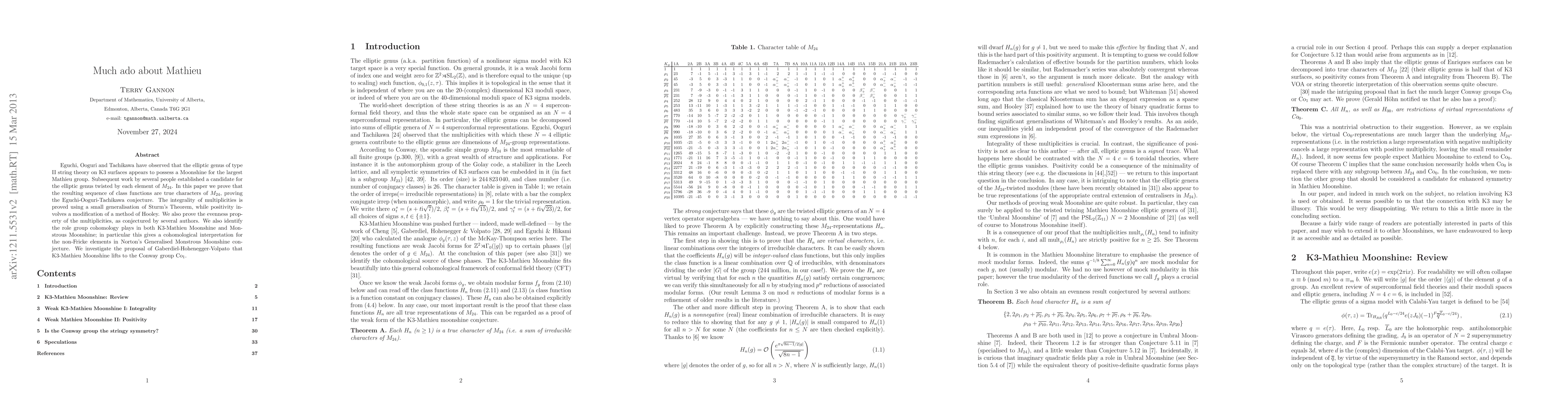 Eguchi, Ooguri and Tachikawa have observed that the elliptic genus of type II string theory on K3 surfaces appears to possess a Moonshine for the largest Mathieu group. Subsequent work by several people established a candidate for the elliptic genus twisted by each element of M24. In this paper we prove that the resulting sequence of class functions are true characters of M24, proving the Eguchi-Ooguri-Tachikawa conjecture. We prove the evenness property of the multiplicities, as conjectured by several authors. We also identify the role group cohomology plays in both K3-Mathieu Moonshine and Monstrous Moonshine; in particular this gives a cohomological interpretation for the non-Fricke elements in Norton's Generalised Monstrous Moonshine conjecture. We investigate the intriguing proposal of Gaberdiel-Hohenegger-Volpato that K3-Mathieu Moonshine lifts to the Conway group Co1.