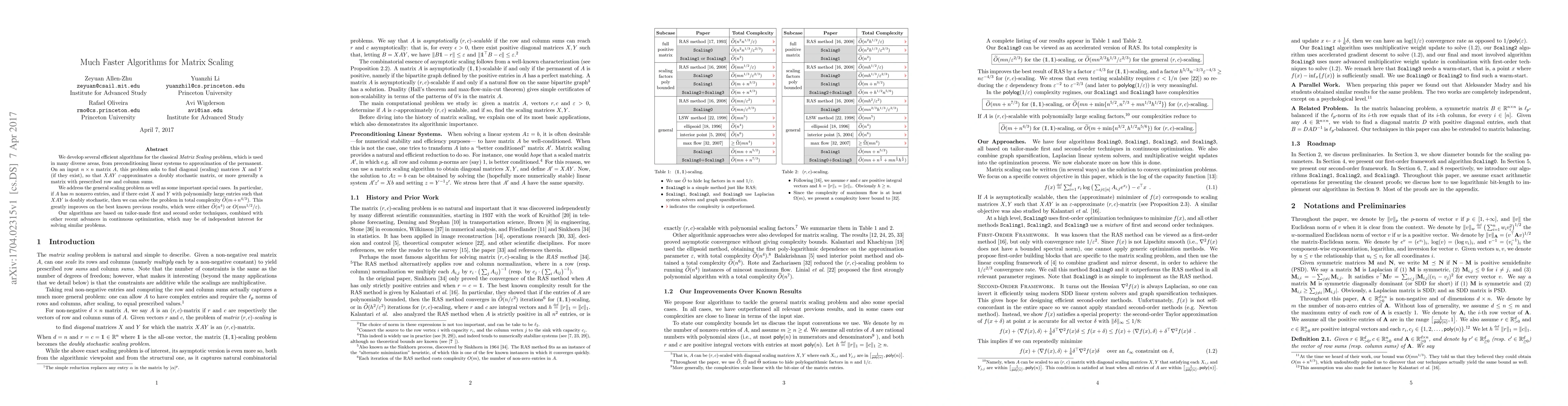 This paper develops efficient algorithms for matrix scaling, improving on previous results with complexity O(m + n^{4/3}) for specific cases, offering significant advancements in solving the classical matrix scaling problem.