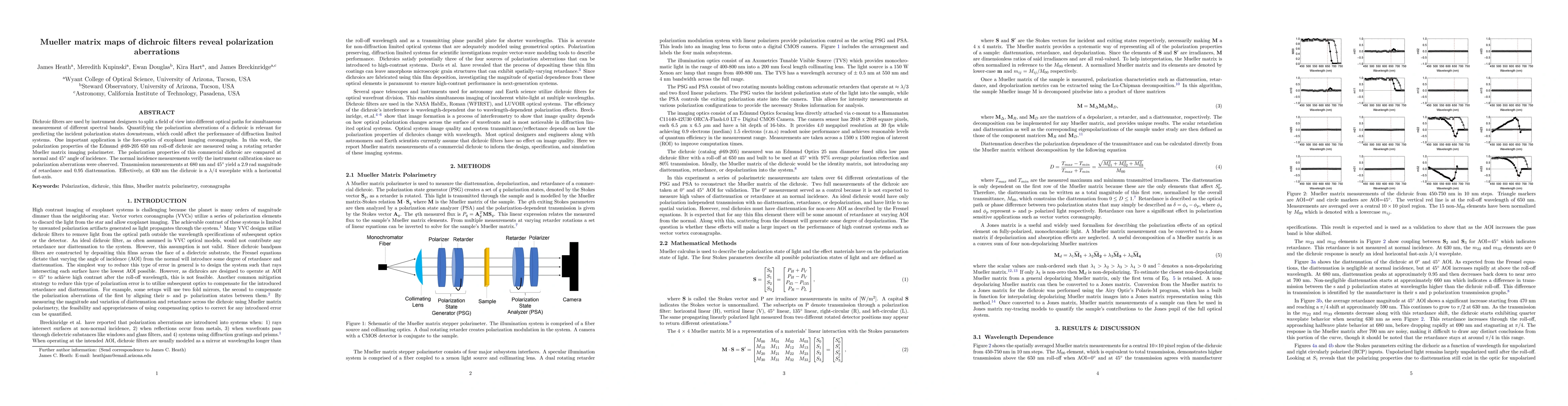 Dichroic filters are used by instrument designers to split a field of view into different optical paths for simultaneous measurement of different spectral bands. Quantifying the polarization aberrations of a dichroic is relevant for predicting the incident polarization states downstream, which could affect the performance of diffraction limited systems. One important application is the fore-optics of exoplanet imaging coronagraphs. In this work, the polarization properties of the Edmund #69-205 650 nm roll-off dichroic are measured using a rotating retarder Mueller matrix imaging polarimeter. The polarization properties of this commercial dichroic are compared at normal and 45$^{\circ}$ angle of incidence. The normal incidence measurements verify the instrument calibration since no polarization aberrations were observed. Transmission measurements at 680 nm and 45$^{\circ}$ yield a 2.9 rad magnitude of retardance and 0.95 diattenuation. Effectively, at 630 nm the dichroic is a $\lambda$/4 waveplate with a horizontal fast-axis.