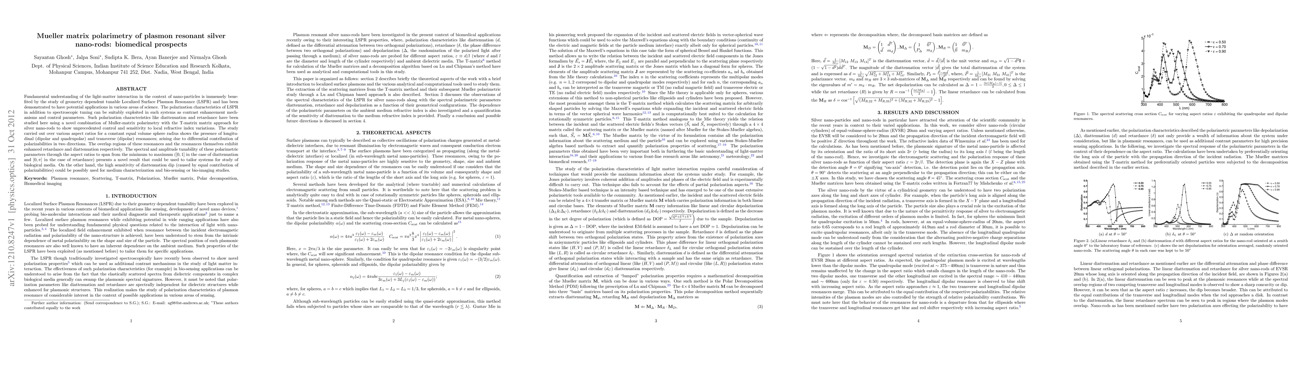 Fundamental understanding of the light-matter interaction in the context of nano-particles is immensely bene- fited by the study of geometry dependent tunable Localized Surface Plasmon Resonance (LSPR) and has been demonstrated to have potential applications in various areas of science. The polarization characteristics of LSPR in addition to spectroscopic tuning can be suitably exploited in such systems as contrast enhancement mech- anisms and control parameters. Such polarization characteristics like diattenuation and retardance have been studied here using a novel combination of Muller-matrix polarimetry with the T-matrix matrix approach for silver nano-rods to show unprecedented control and sensitivity to local refractive index variations. The study carried out over various aspect ratios for a constant equal volume sphere radius shows the presence of longitu- dinal (dipolar and quadrupolar) and transverse (dipolar) resonances; arising due to differential contribution of polarizabilities in two directions. The overlap regions of these resonances and the resonances themselves exhibit enhanced retardance and diattenuation respectively. The spectral and amplitude tunability of these polarimetric parameters through the aspect ratios to span from the minimum to maximum ([0, 1] in the case of diattenuation and [0, {\pi}] in the case of retardance) presents a novel result that could be used to tailor systems for study of biological media. On the other hand, the high sensitivity of diattenuation dip (caused by equal contribution of polarizabilities) could be possibly used for medium characterization and bio-sensing or bio-imaging studies.