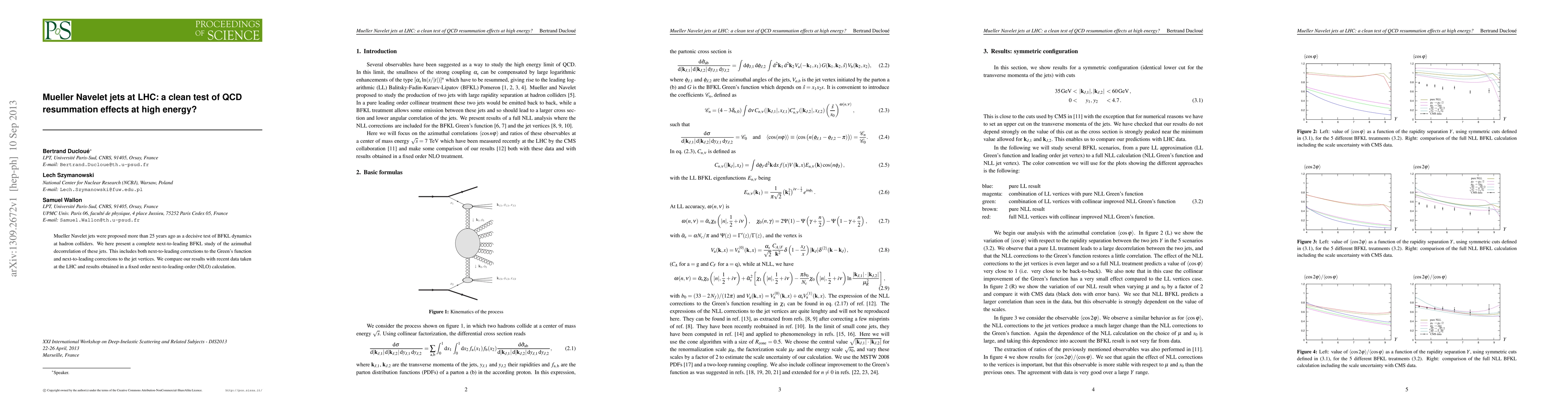 This paper investigates Mueller Navelet jets to test Quantum Chromodynamics (QCD) resummation effects at high energy, presenting a next-to-leading BFKL study of their azimuthal decorrelation and comparing results with LHC data and fixed order NLO calculations.