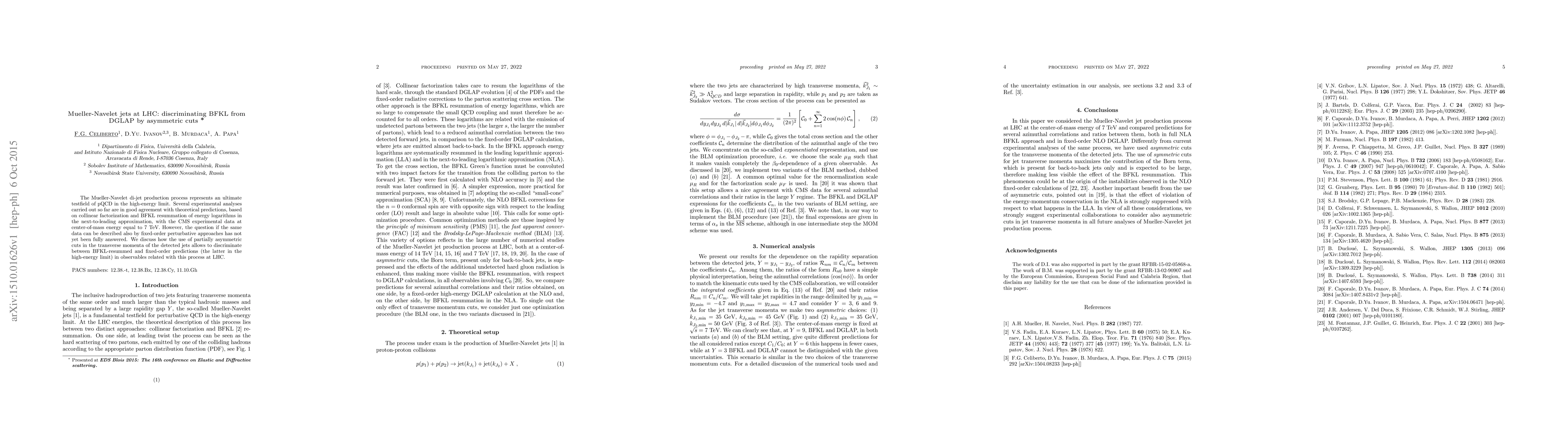 Researchers explored how asymmetric cuts in jet transverse momenta can distinguish between BFKL resummed and fixed-order perturbative predictions for Mueller-Navelet jets at LHC energies.