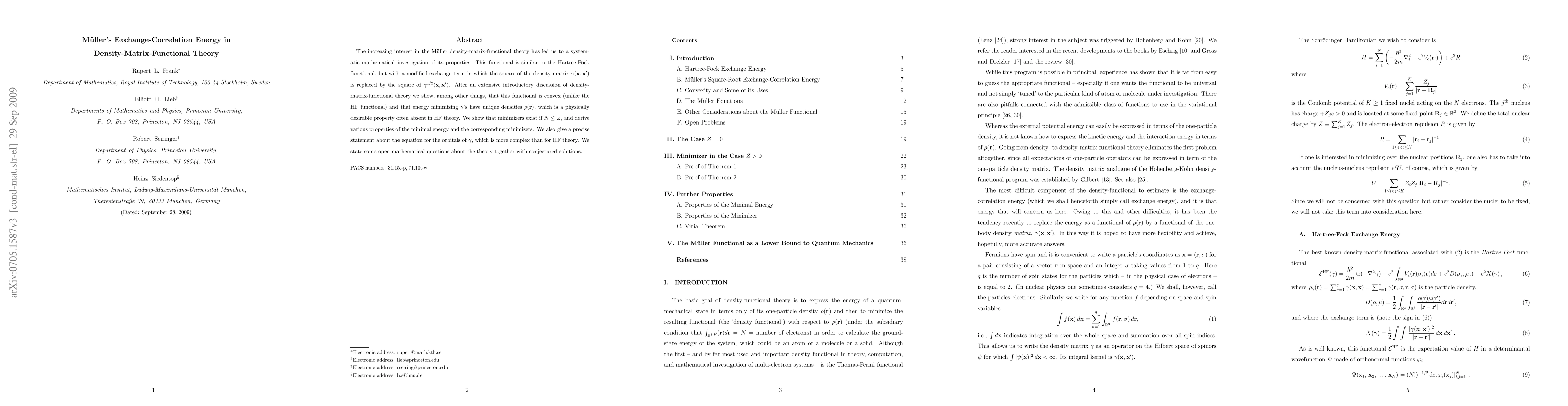 This paper explores the properties of Mueller's density-matrix-functional theory, demonstrating its convexity and the uniqueness of densities for energy minimizers, unlike Hartree-Fock theory. It also discusses the existence of minimizers under certain conditions and outlines the more complex orbital equations compared to Hartree-Fock theory.