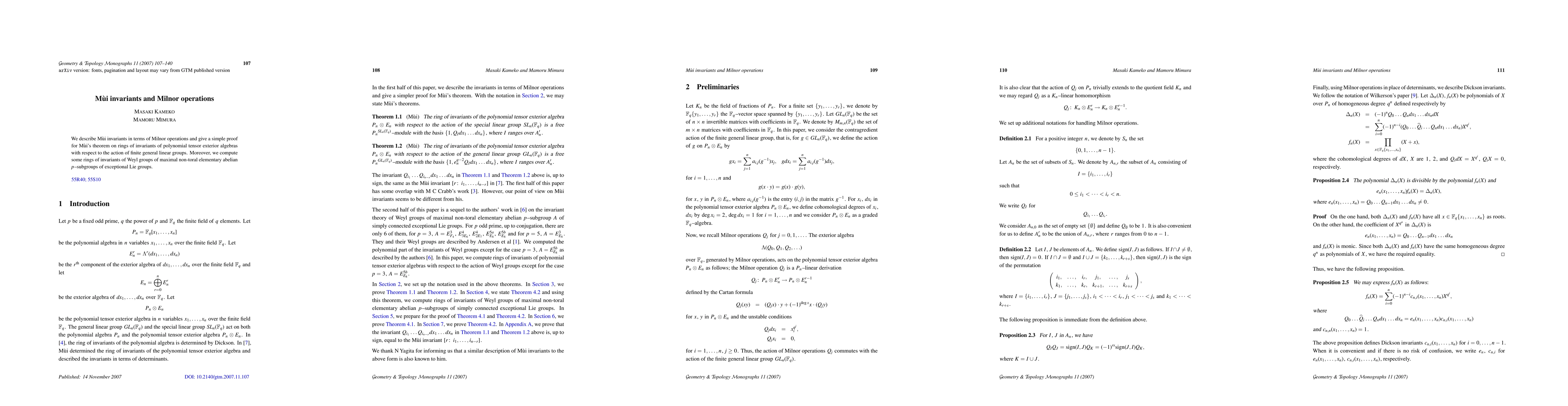 This paper connects Mui invariants to Milnor operations and provides a straightforward proof for Mui's theorem regarding the rings of invariants for polynomial tensor exterior algebras under finite general linear group actions. It also computes invariant rings for Weyl groups of certain exceptional Lie groups.