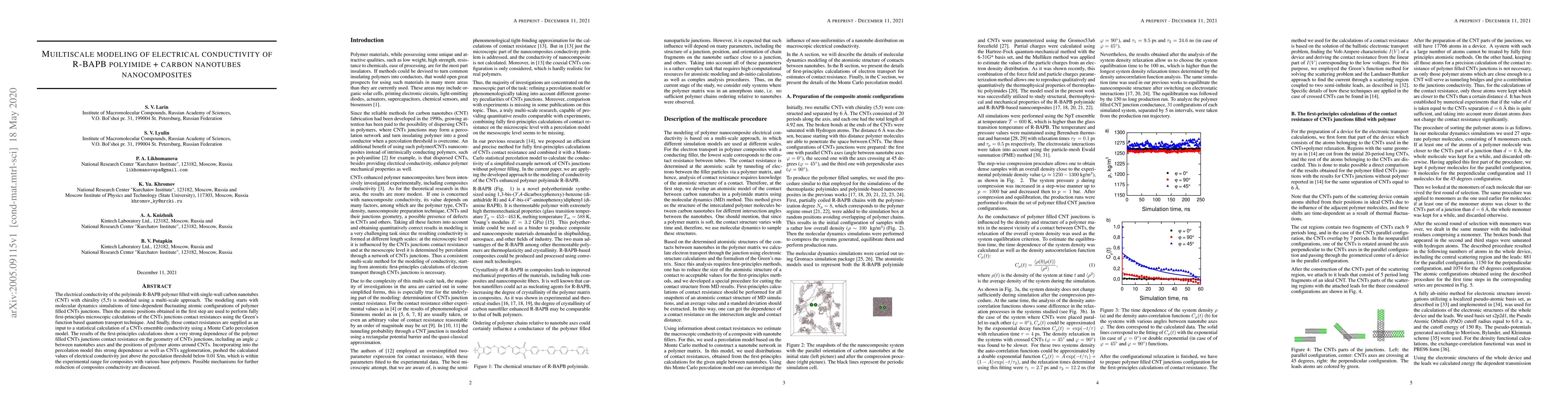 Researchers modeled the electrical conductivity of a polyimide-carbon nanotube composite using multiple scales, finding that it can reach values just above the percolation threshold, within experimental range for various composites.