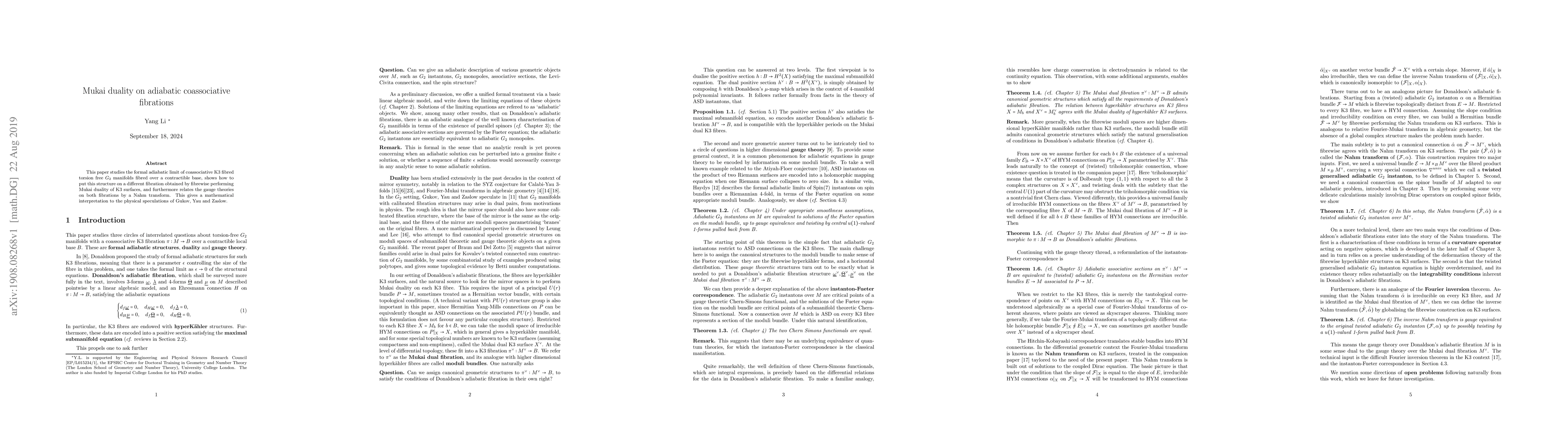 This paper studies the formal adiabatic limit of coassociative K3 fibred torsion free $G_2$ manifolds fibred over a contractible base, shows how to put this structure on a different fibration obtained by fibrewise performing Mukai duality of K3 surfaces, and furthermore relates the gauge theories on both fibrations by a Nahm transform. This gives a mathematical interpretation to the physical speculations of Gukov, Yau and Zaslow.