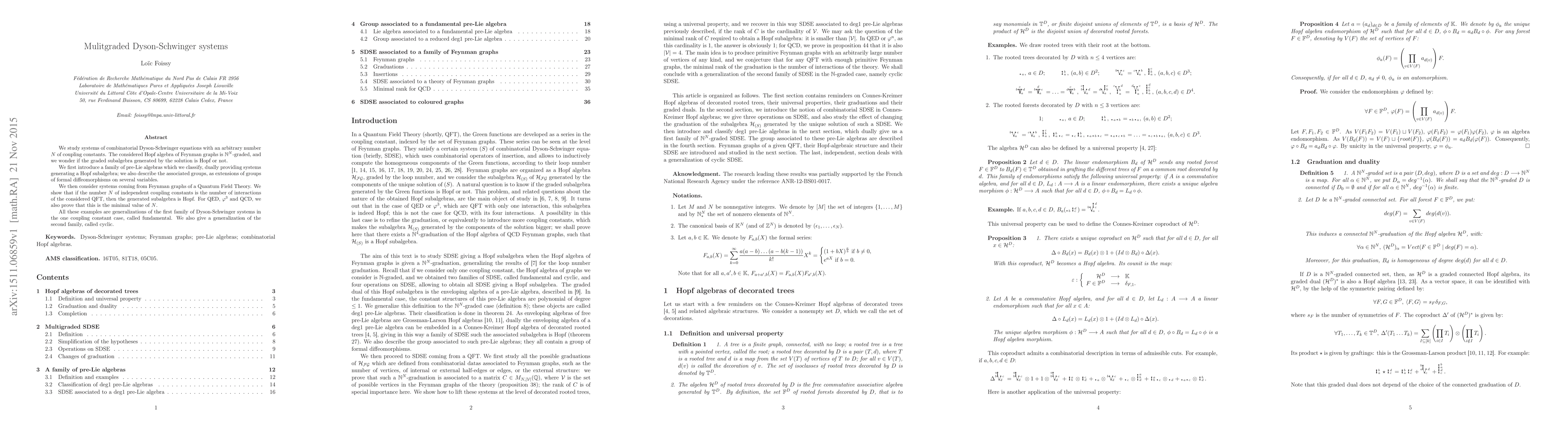 We study systems of combinatorial Dyson-Schwinger equations with an arbitrary number $N$ of coupling constants. The considered Hopf algebra of Feynman graphs is $\mathbb{N}^N$-graded, and we wonder if the graded subalgebra generated by the solution is Hopf or not. We first introduce a family of pre-Lie algebras which we classify, dually providing systems generating a Hopf subalgebra, we also describe the associated groups, as extensions of groups of formal diffeomorphisms on several variables. We then consider systems coming from Feynman graphs of a Quantum Field Theory. We show that if the number $N$ of independent coupling constants is the number of interactions of the considered QFT, then the generated subalgebra is Hopf. For QED, $\varphi^3$ and QCD, we also prove that this is the minimal value of $N$. All these examples are generalizations of the first family of Dyson-Schwinger systems in the one coupling constant case, called fundamental.We also give a generalization of the second family, called cyclic.