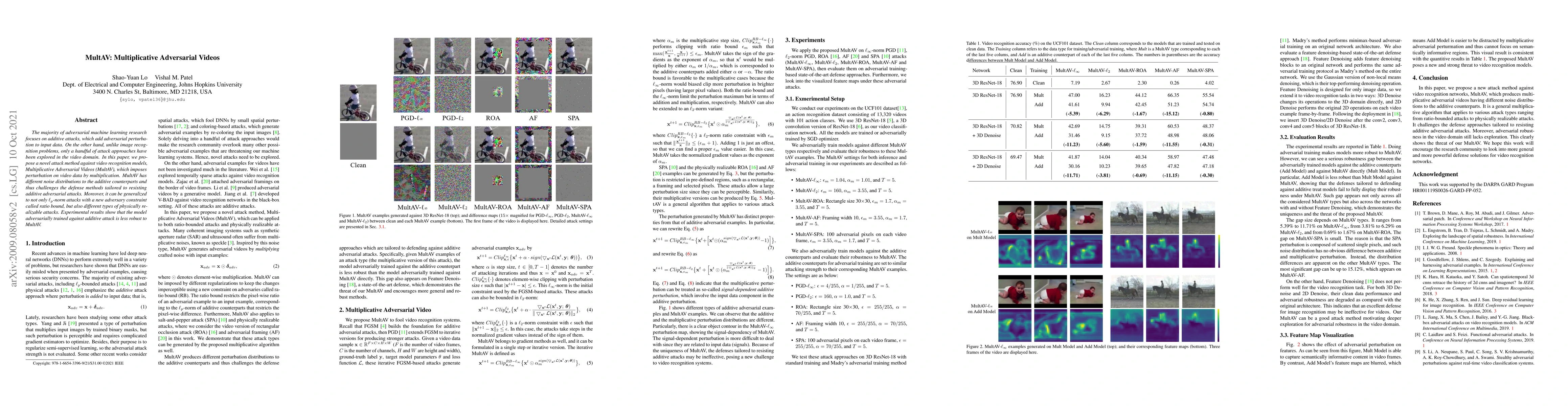 This paper introduces a novel multiplicative adversarial attack method, Multiplicative Adversarial Videos (MultAV), for video recognition models, contrasting with traditional additive attacks. MultAV challenges existing defenses designed for additive perturbations and can be generalized for various attack types, demonstrating reduced robustness in models trained against additive attacks.