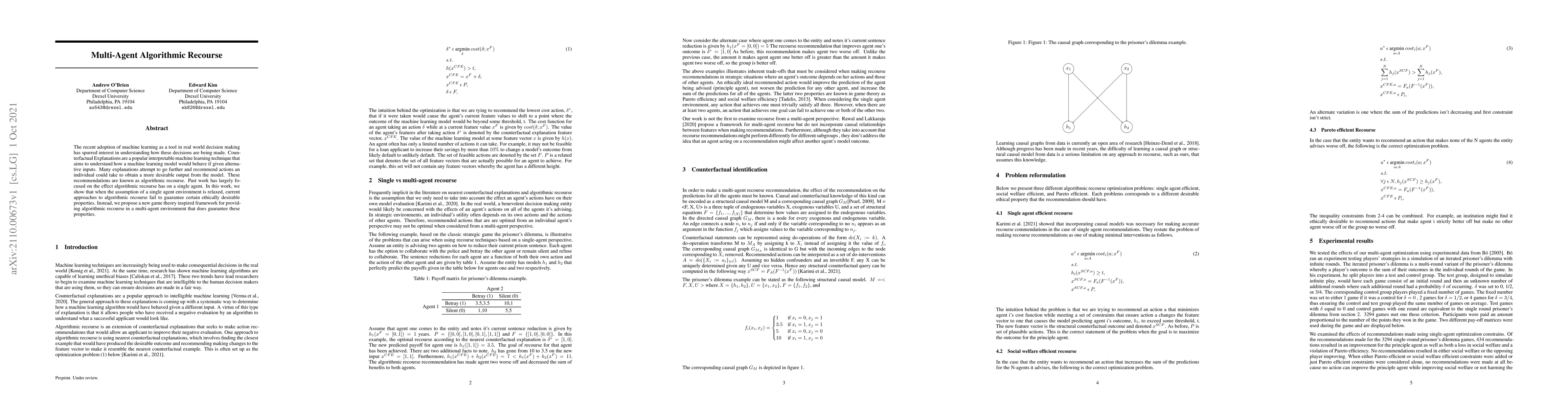 The recent adoption of machine learning as a tool in real world decision making has spurred interest in understanding how these decisions are being made. Counterfactual Explanations are a popular interpretable machine learning technique that aims to understand how a machine learning model would behave if given alternative inputs. Many explanations attempt to go further and recommend actions an individual could take to obtain a more desirable output from the model. These recommendations are known as algorithmic recourse. Past work has largely focused on the effect algorithmic recourse has on a single agent. In this work, we show that when the assumption of a single agent environment is relaxed, current approaches to algorithmic recourse fail to guarantee certain ethically desirable properties. Instead, we propose a new game theory inspired framework for providing algorithmic recourse in a multi-agent environment that does guarantee these properties.