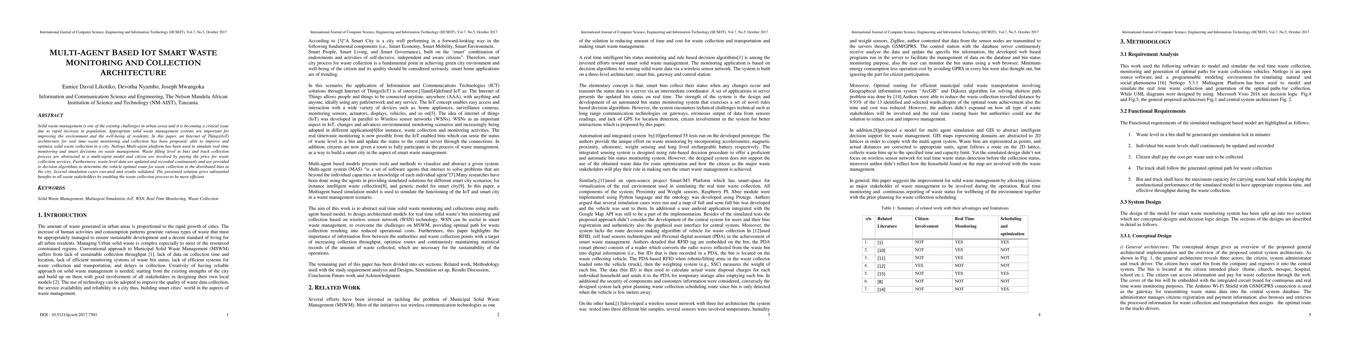 This paper proposes an IoT architecture using a multi-agent system to optimize real-time waste monitoring and collection in urban areas. The Netlogo platform simulates smart waste management, enabling efficient collection routes and involving citizens in the waste collection process.