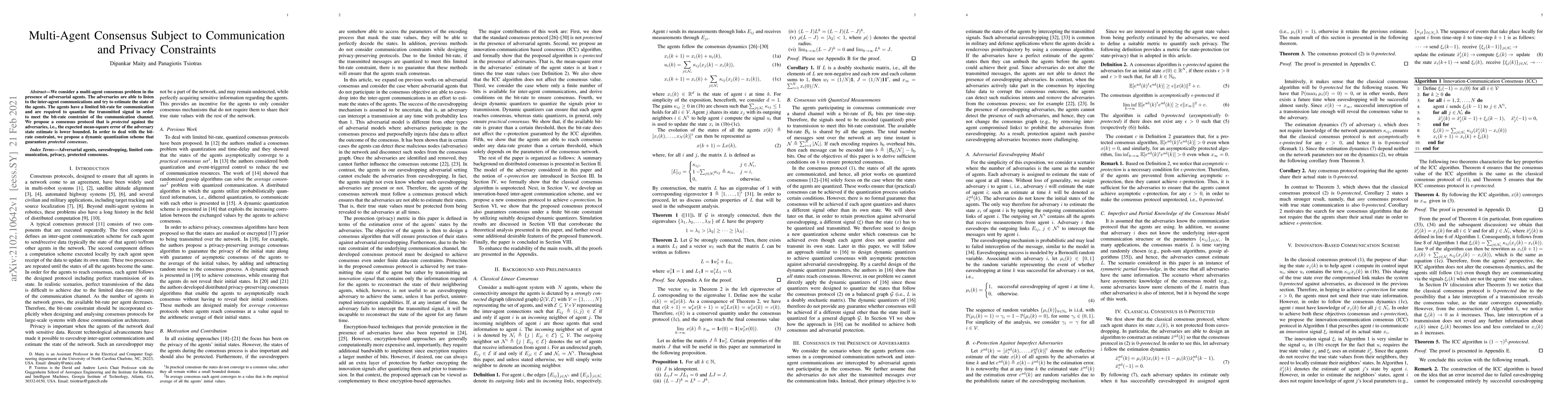 Researchers developed a consensus protocol for multi-agent systems under attack from adversaries who can eavesdrop on communications and try to estimate agent states. The solution uses dynamic quantization to ensure protected consensus while meeting communication bit-rate constraints.