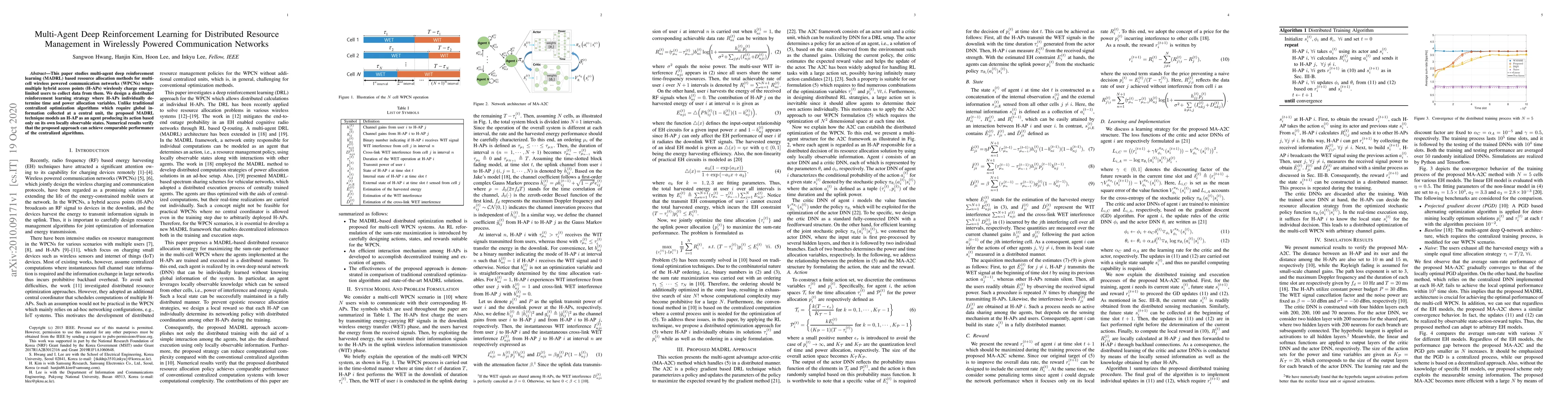 This paper proposes a multi-agent deep reinforcement learning (MADRL) approach for distributed resource management in wireless powered communication networks, enabling hybrid access points to independently optimize time and power allocation based on local observations. The MADRL technique achieves comparable performance to centralized optimization without requiring global information.