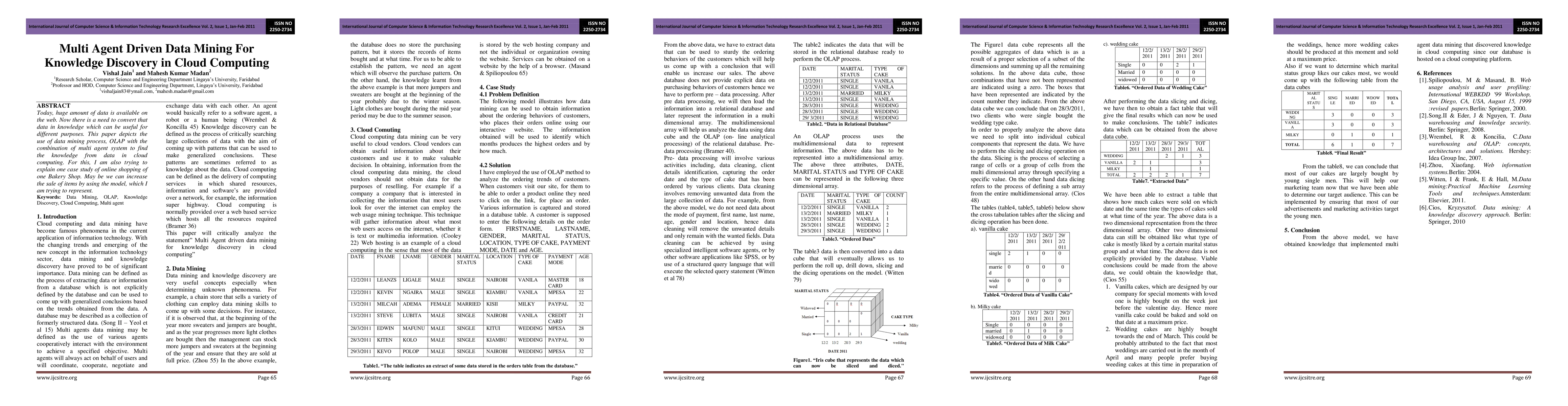 Today, huge amount of data is available on the web. Now there is a need to convert that data in knowledge which can be useful for different purposes. This paper depicts the use of data mining process, OLAP with the combination of multi agent system to find the knowledge from data in cloud computing. For this, I am also trying to explain one case study of online shopping of one Bakery Shop. May be we can increase the sale of items by using the model, which I am trying to represent.