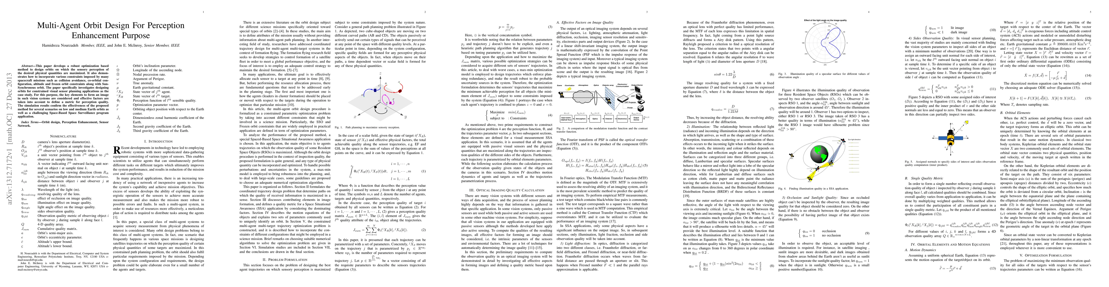 A new method for designing orbits that maximizes sensory perception of physical quantities is proposed, considering constraints like collision avoidance and altitude limits. The approach effectively enhances visual sensor planning in space missions.