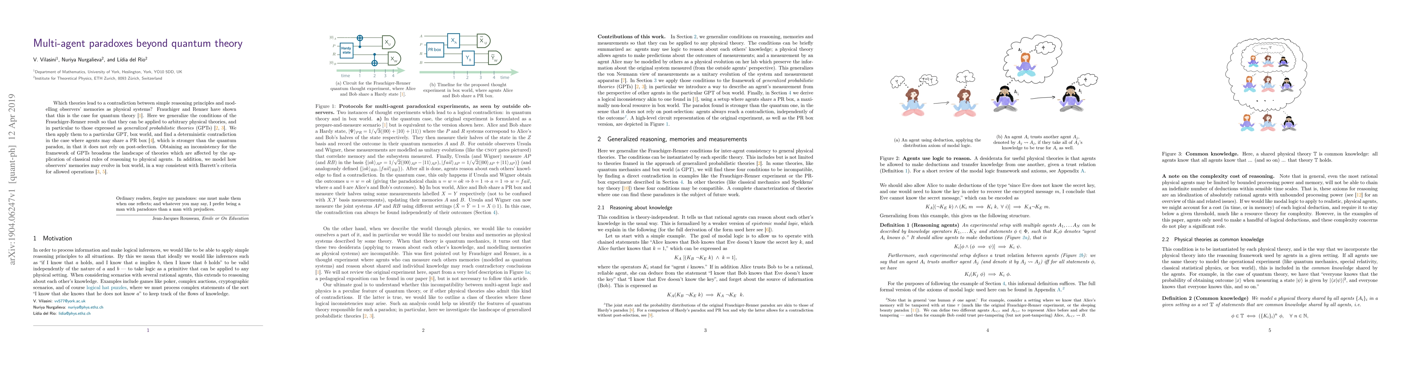 Which theories lead to a contradiction between simple reasoning principles and modelling observers' memories as physical systems? Frauchiger and Renner have shown that this is the case for quantum theory, with a thought experiment that leads to a multi-agent paradox. Here we generalize the conditions of the Frauchiger-Renner result so that they can be applied to arbitrary physical theories, and in particular to those expressed as generalized probabilistic theories (GPTs). We then apply them to a particular GPT, box world, and find a deterministic contradiction in the case where agents may share a PR box, which is stronger than the quantum paradox, in that it does not rely on post-selection. Obtaining an inconsistency for the framework of GPTs broadens the landscape of theories which are affected by the application of classical rules of reasoning to physical agents. In addition, we model how observers' memories may evolve in box world, in a way consistent with Barrett's criteria for allowed operations.