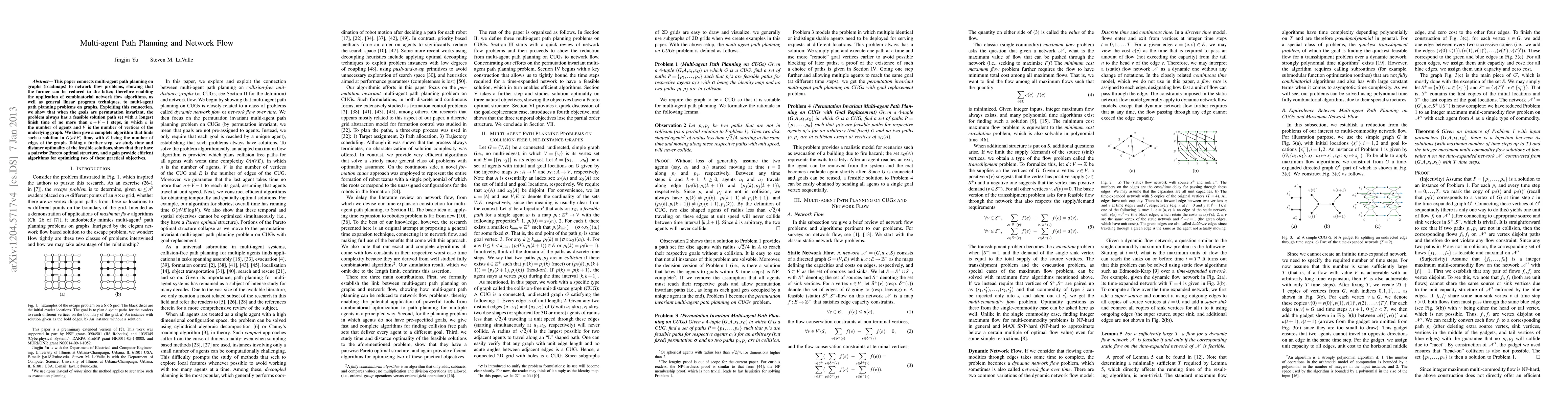 This paper links multi-agent path planning on graphs to network flow problems, demonstrating that multi-agent path planning can leverage combinatorial network flow algorithms and linear programming techniques. It presents an efficient algorithm to find a feasible solution with optimal time and distance, ensuring a pairwise Pareto optimal structure.