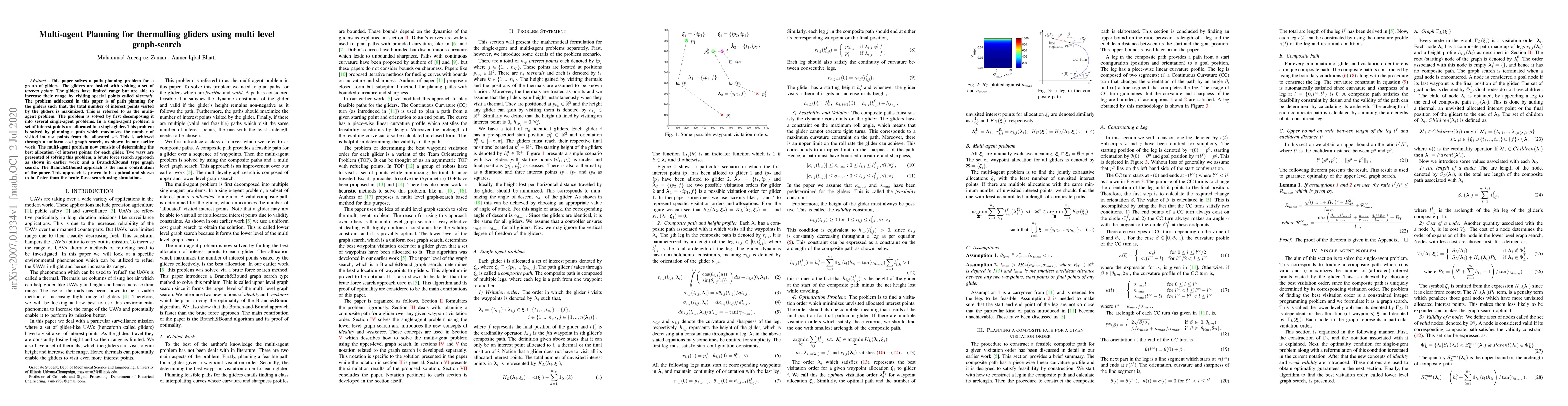 This paper presents a multi-agent planning solution for thermalling gliders to maximize the number of interest points visited, using a multi-level graph search. The optimal Branch&Bound approach outperforms the brute force search in both efficiency and optimality.