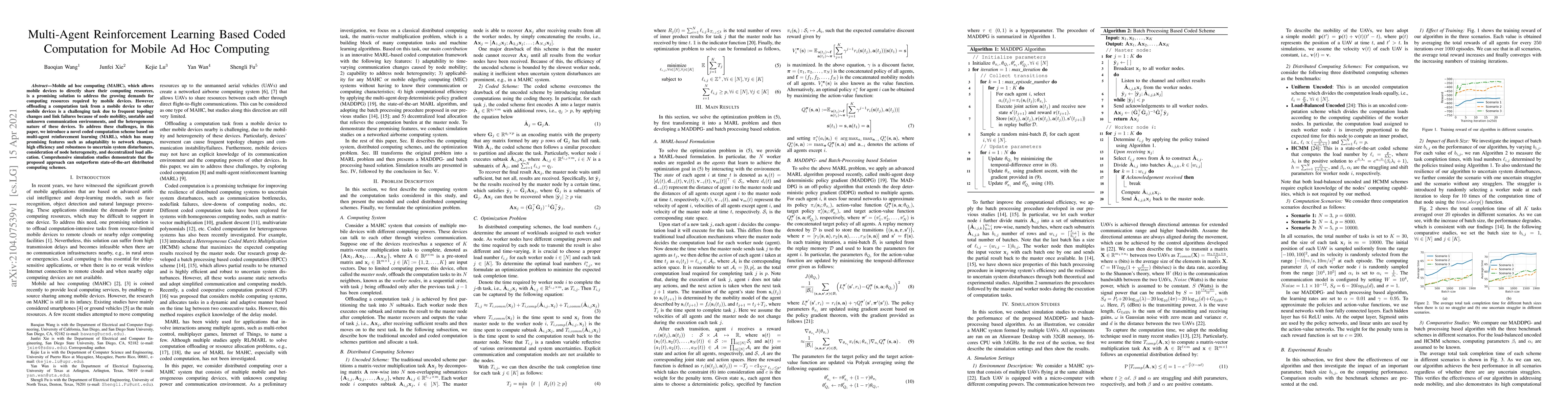 This paper proposes a coded computation scheme based on multi-agent reinforcement learning (MARL) to tackle the challenges of computation offloading in mobile ad hoc computing (MAHC). The approach demonstrates adaptability, efficiency, and robustness, outperforming existing distributed computing methods in simulations.