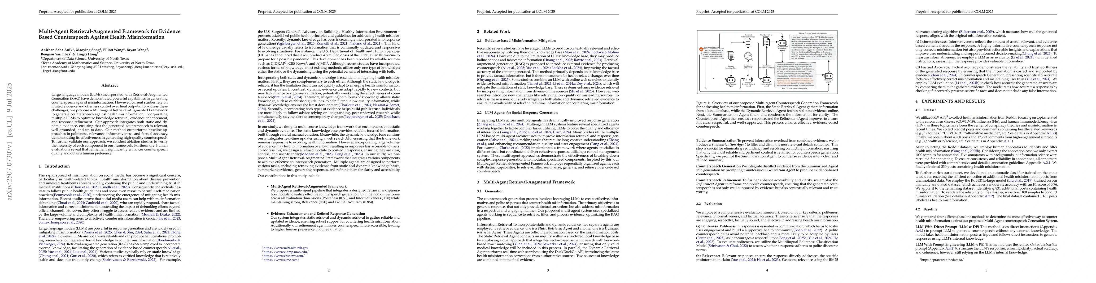 Large language models (LLMs) incorporated with Retrieval-Augmented Generation (RAG) have demonstrated powerful capabilities in generating counterspeech against misinformation. However, current studies rely on limited evidence and offer less control over final outputs. To address these challenges, we propose a Multi-agent Retrieval-Augmented Framework to generate counterspeech against health misinformation, incorporating multiple LLMs to optimize knowledge retrieval, evidence enhancement, and response refinement. Our approach integrates both static and dynamic evidence, ensuring that the generated counterspeech is relevant, well-grounded, and up-to-date. Our method outperforms baseline approaches in politeness, relevance, informativeness, and factual accuracy, demonstrating its effectiveness in generating high-quality counterspeech. To further validate our approach, we conduct ablation studies to verify the necessity of each component in our framework. Furthermore, human evaluations reveal that refinement significantly enhances counterspeech quality and obtains human preference.