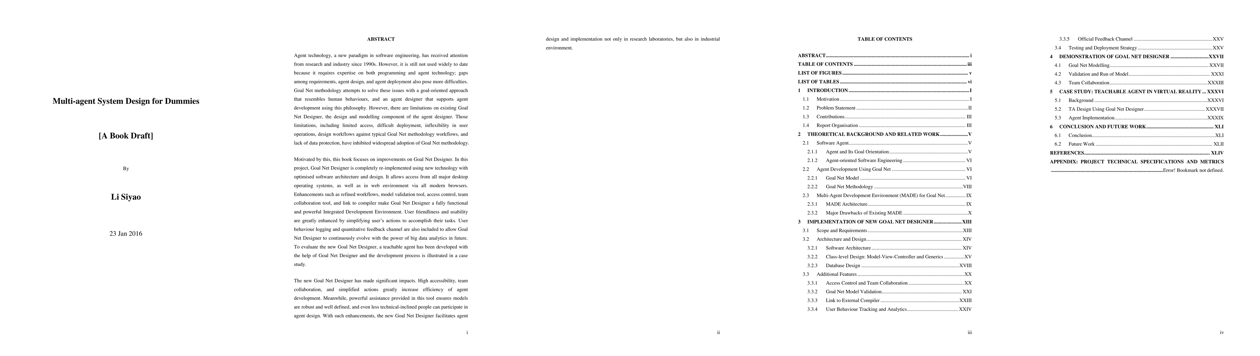 Agent technology, a new paradigm in software engineering, has received attention from research and industry since 1990s. However, it is still not used widely to date because it requires expertise on both programming and agent technology; gaps among requirements, agent design, and agent deployment also pose more difficulties. Goal Net methodology attempts to solve these issues with a goal-oriented approach that resembles human behaviours, and an agent designer that supports agent development using this philosophy. However, there are limitations on existing Goal Net Designer, the design and modelling component of the agent designer. Those limitations, including limited access, difficult deployment, inflexibility in user operations, design workflows against typical Goal Net methodology workflows, and lack of data protection, have inhibited widespread adoption of Goal Net methodology. Motivated by this, this book focuses on improvements on Goal Net Designer. In this project, Goal Net Designer is completely re-implemented using new technology with optimised software architecture and design. It allows access from all major desktop operating systems, as well as in web environment via all modern browsers. Enhancements such as refined workflows, model validation tool, access control, team collaboration tool, and link to compiler make Goal Net Designer a fully functional and powerful Integrated Development Environment. User friendliness and usability are greatly enhanced by simplifying user's actions to accomplish their tasks. User behaviour logging and quantitative feedback channel are also included to allow Goal Net Designer to continuously evolve with the power of big data analytics in future. To evaluate the new Goal Net Designer, a teachable agent has been developed with the help of Goal Net Designer and the development process is illustrated in a case study.