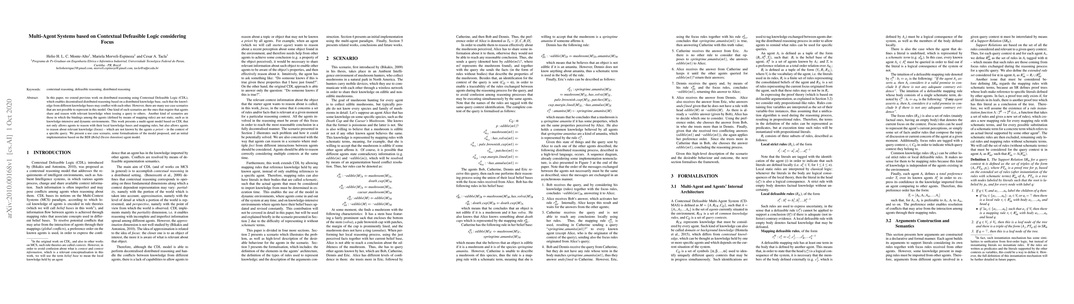 In this paper, we extend previous work on distributed reasoning using Contextual Defeasible Logic (CDL), which enables decentralised distributed reasoning based on a distributed knowledge base, such that the knowledge from different knowledge bases may conflict with each other. However, there are many use case scenarios that are not possible to represent in this model. One kind of such scenarios are the ones that require that agents share and reason with relevant knowledge when issuing a query to others. Another kind of scenarios are those in which the bindings among the agents (defined by means of mapping rules) are not static, such as in knowledge-intensive and dynamic environments. This work presents a multi-agent model based on CDL that not only allows agents to reason with their local knowledge bases and mapping rules, but also allows agents to reason about relevant knowledge (focus) -- which are not known by the agents a priori -- in the context of a specific query. We present a use case scenario, some formalisations of the model proposed, and an initial implementation based on the BDI (Belief-Desire-Intention) agent model.