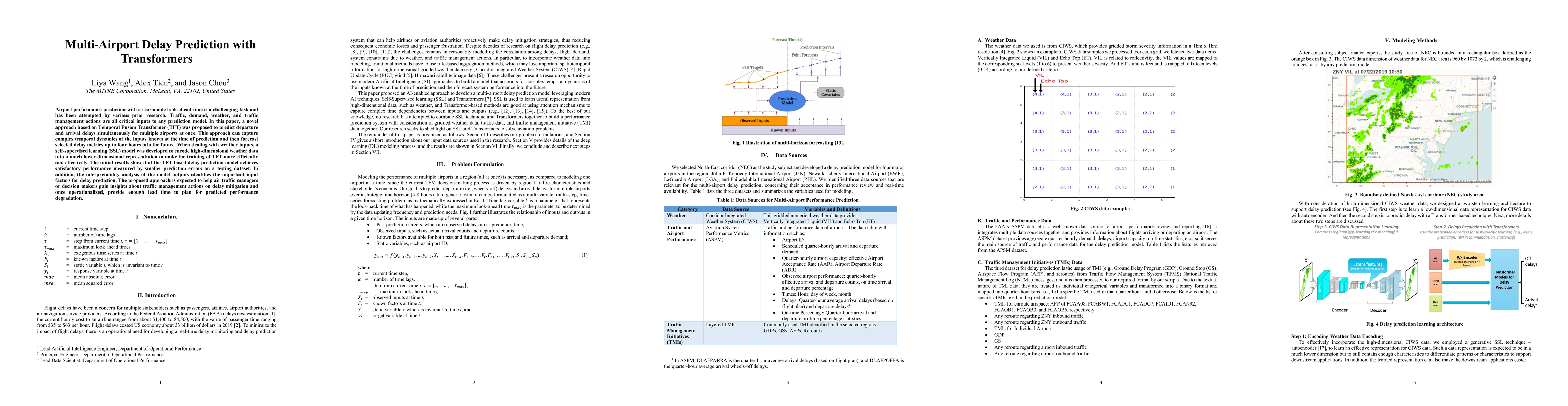 A new approach using Transformers predicts departure and arrival delays for multiple airports simultaneously, achieving satisfactory performance with interpretable results. The model provides valuable insights for air traffic managers to plan for delay mitigation.