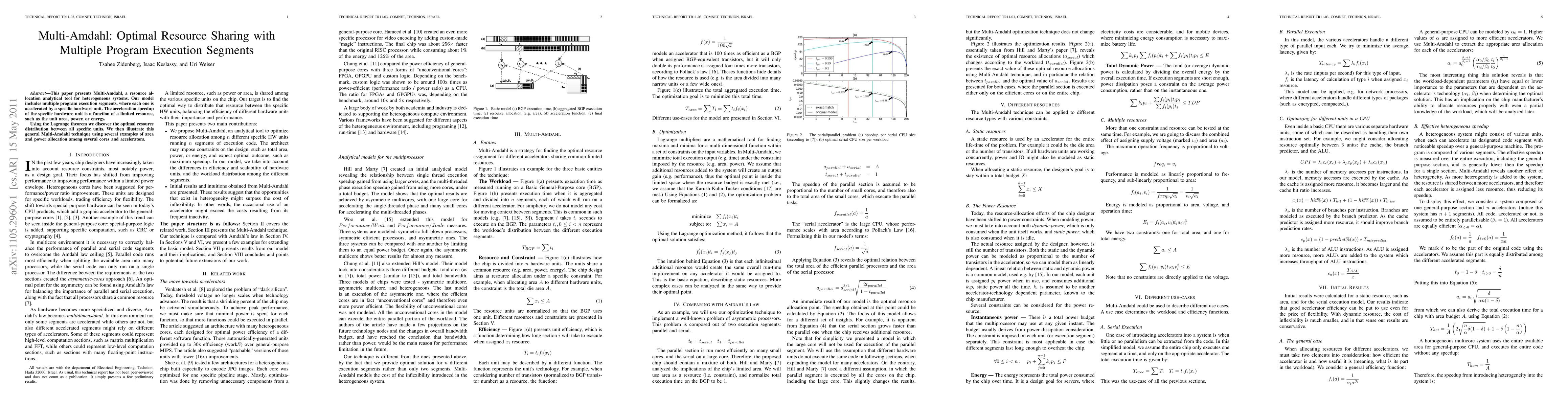 This paper introduces Multi-Amdahl, an optimal resource sharing tool for heterogeneous systems that accelerates multiple program execution segments using limited resources. It uses the Lagrange theorem to find the optimal distribution of resources among hardware units.