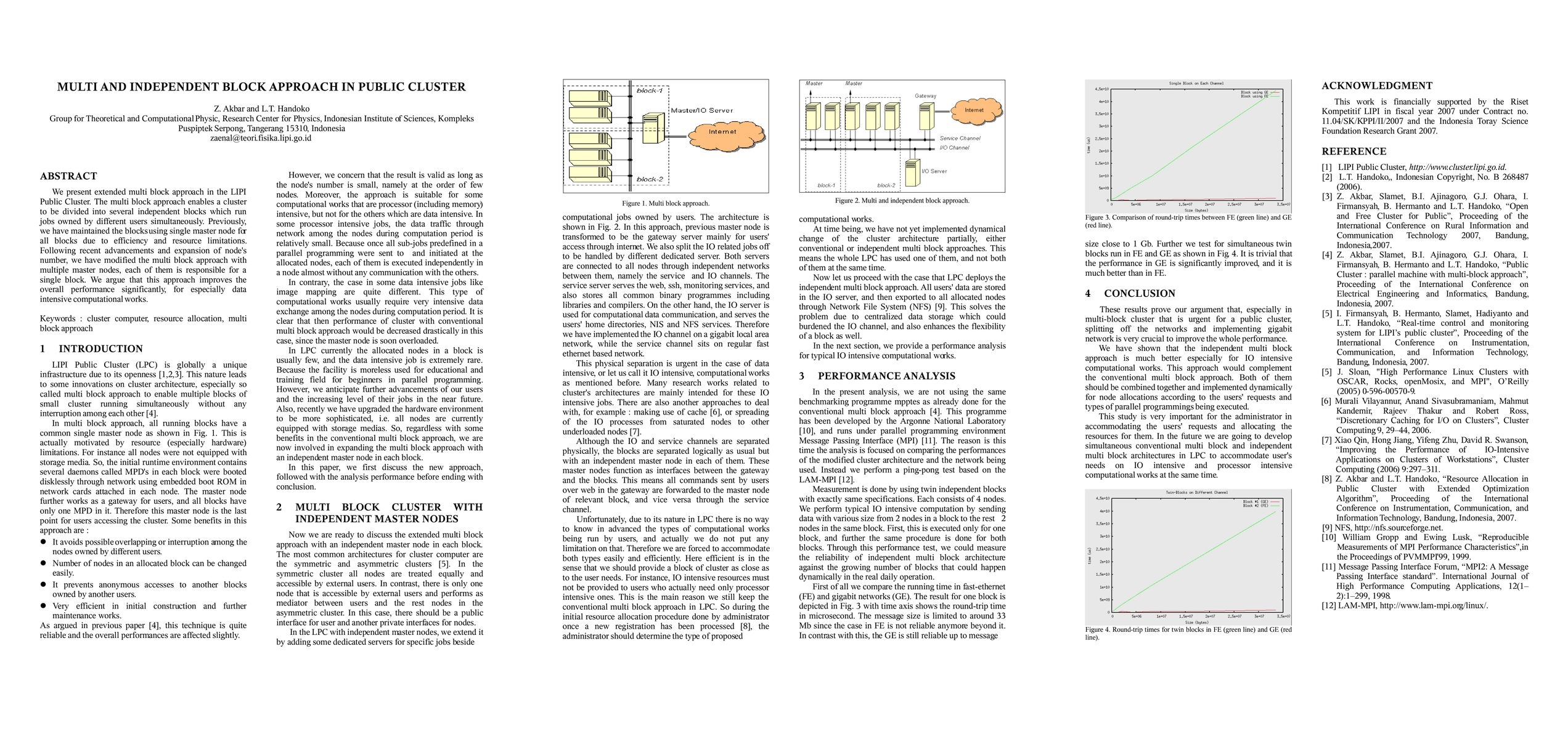 A research paper presents an improved multi-block approach in public clusters, allowing for simultaneous job execution on multiple independent blocks with separate master nodes, significantly improving performance for data-intensive tasks.