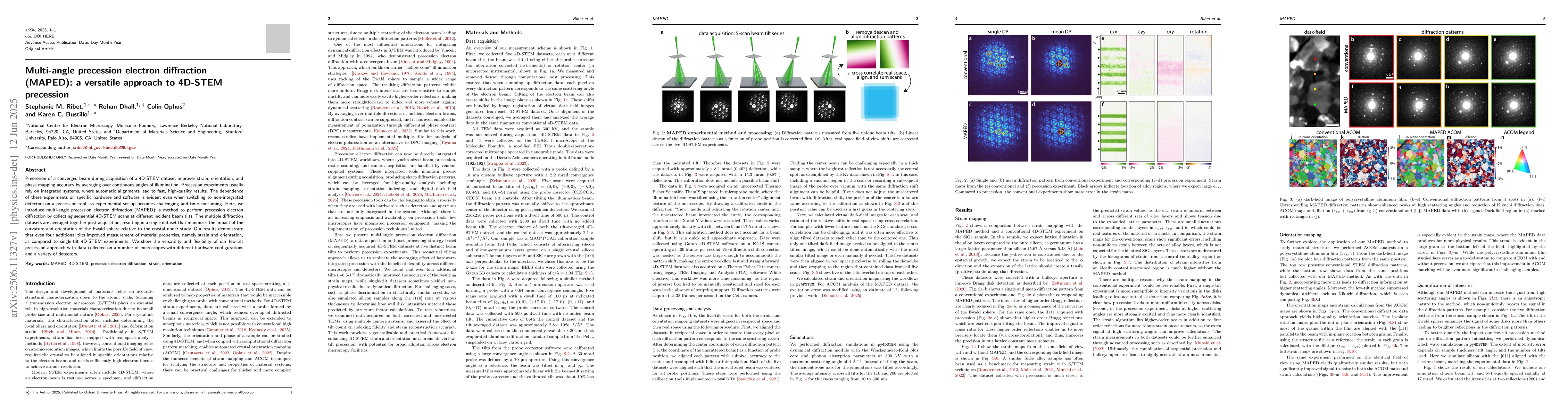 Precession of a converged beam during acquisition of a 4D-STEM dataset improves strain, orientation, and phase mapping accuracy by averaging over continuous angles of illumination. Precession experiments usually rely on integrated systems, where automatic alignments lead to fast, high-quality results. The dependence of these experiments on specific hardware and software is evident even when switching to non-integrated detectors on a precession tool, as experimental set-up becomes challenging and time-consuming. Here, we introduce multi-angle precession electron diffraction (MAPED): a method to perform precession electron diffraction by collecting sequential 4D-STEM scans at different incident beam tilts. The multiple diffraction datasets are averaged together post-acquisition, resulting in a single dataset that minimizes the impact of the curvature and orientation of the Ewald sphere relative to the crystal under study. Our results demonstrate that even four additional tilts improved measurement of material properties, namely strain and orientation, as compared to single-tilt 4D-STEM experiments. We show the versatility and flexibility of our few-tilt precession approach with data collected on a number of microscopes with different hardware configurations and a variety of detectors.